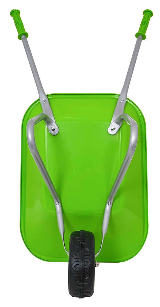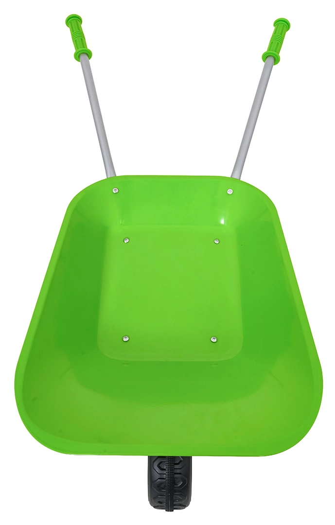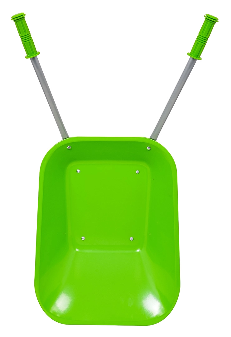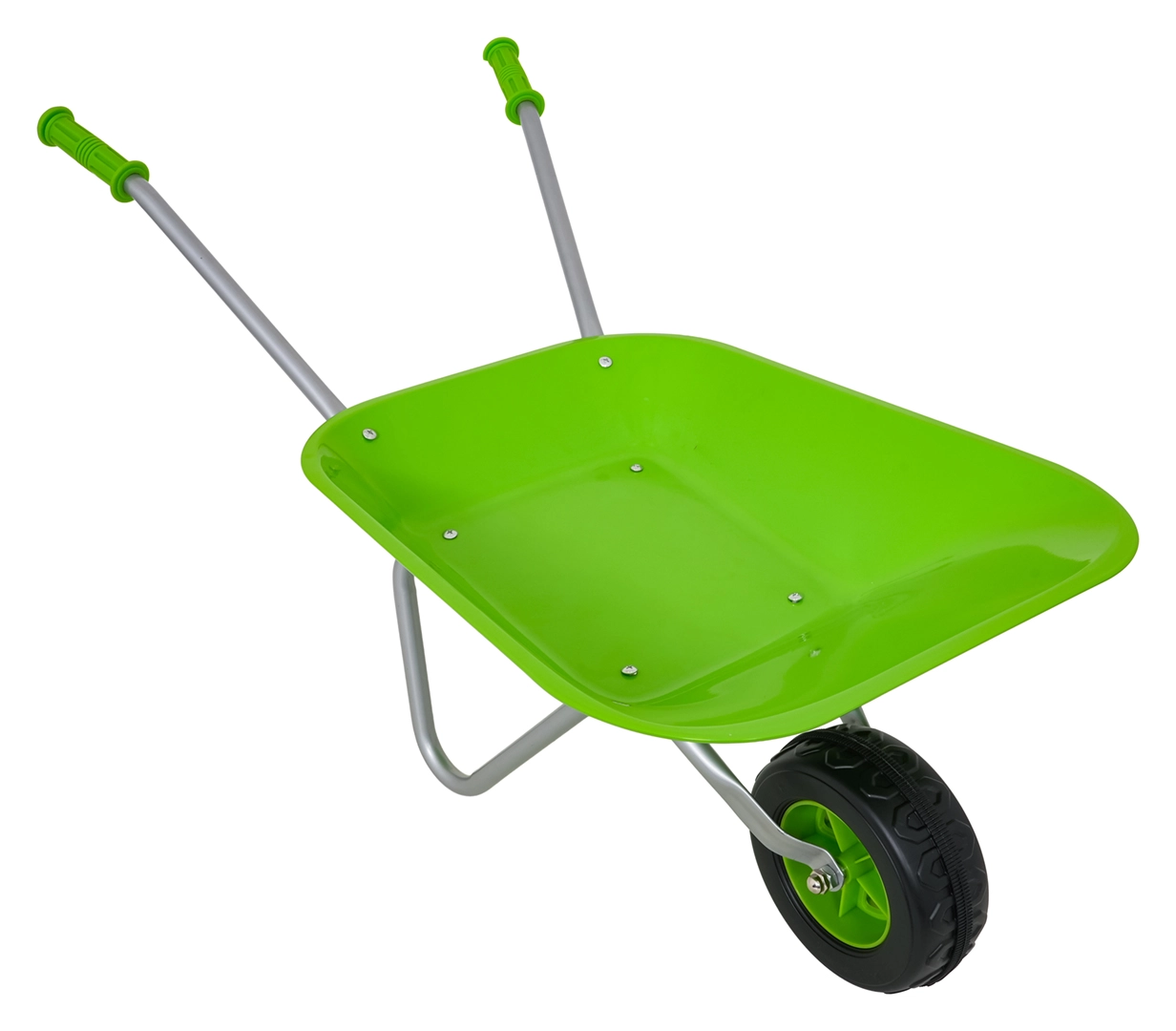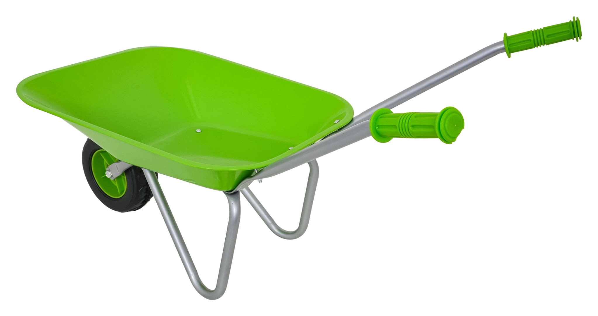 Lagana i stabilna dječja kolica sa širokim koritom i jednim kotačem savladavaju zemlju, lišće i sitni alat. Ergonomske ručke s protukliznim prihvatima olakšavaju rukovanje.