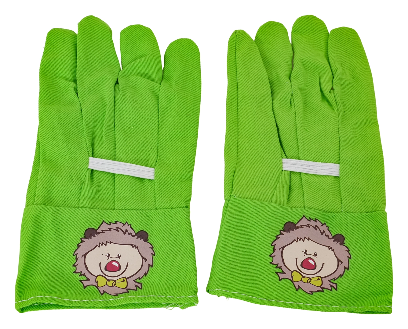 Elastične dječje rukavice sa zabavnim motivom ježa štite ruke od prljavštine i manjih ogrebotina. Odlične za rad u vrtu i igru na otvorenom.