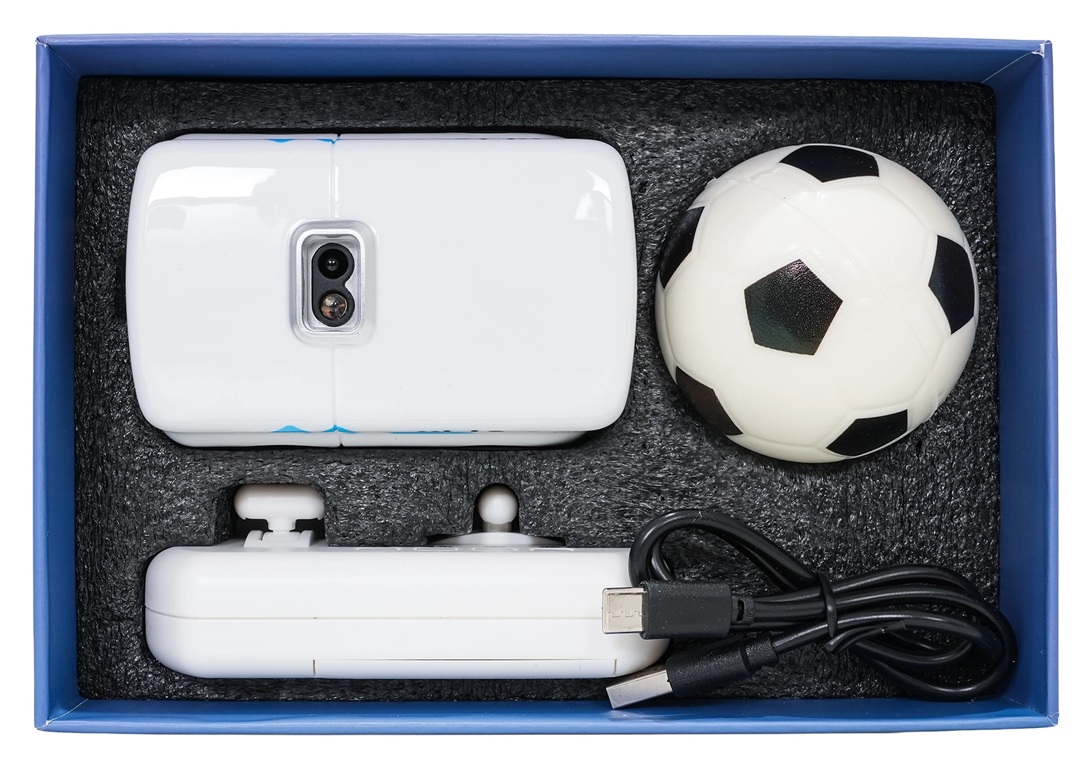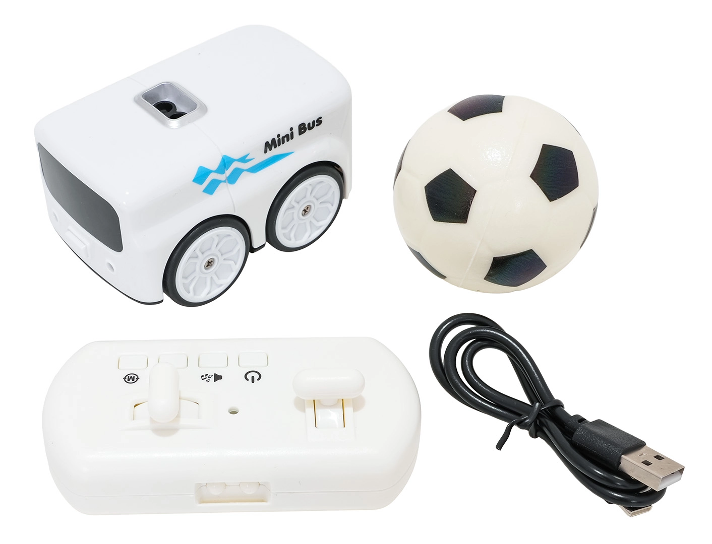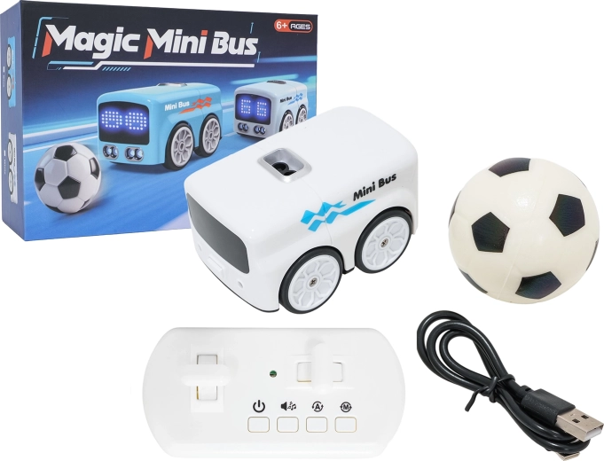 - Autobus, meka lopta, daljinski upravljač, upute, USB-C kabel