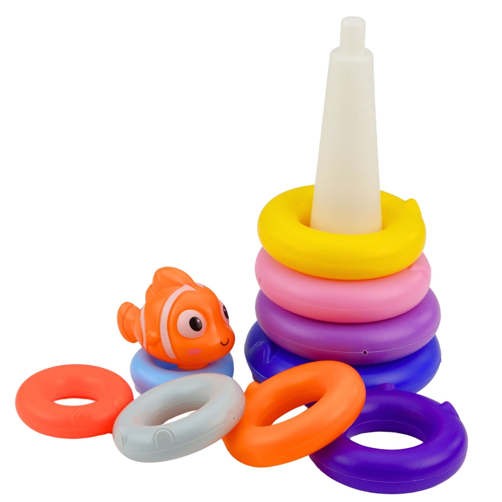 Ova klasična piramida od prstenova sastoji se od 10 dijelova različitih veličina i živih boja. Djeca slažu prstenove na stožastu šipku od najvećeg do najmanjeg, a na vrh postavljaju figuricu ribice. Igra prirodno razvija strpljenje, koncentraciju i sposobnost razvrstavanja i uspoređivanja.
