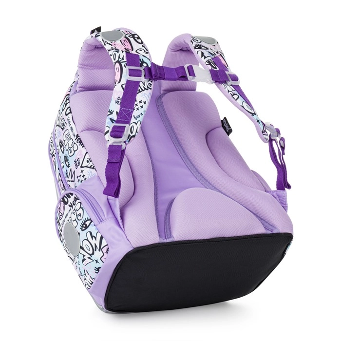 Školska torba Oxy Go Funny Girl impresionira razigranim dizajnom i promišljenom ergonomijom za svakodnevno nošenje. Zahvaljujući anatomski oblikovanim, prozračnim leđima i podstavljenim, podesivim naramenicama pristaje udobno i stabilno. Čvrsto vodonepropusno dno štiti sadržaj od vlage i zaprljanja.
