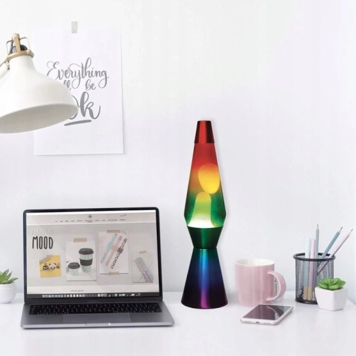 Otkrijte čaroliju klasične lava lampe u modernom, duginom izdanju. Tekući vosak u toplom svjetlu stvara umirujući pokret, idealan za relaksaciju nakon napornog dana te kao originalan dodatak dnevnoj sobi, spavaćoj sobi ili radnom prostoru. Zahvaljujući visini od 40 cm ističe se kao atraktivna dekoracija, a da ne zauzima previše mjesta.