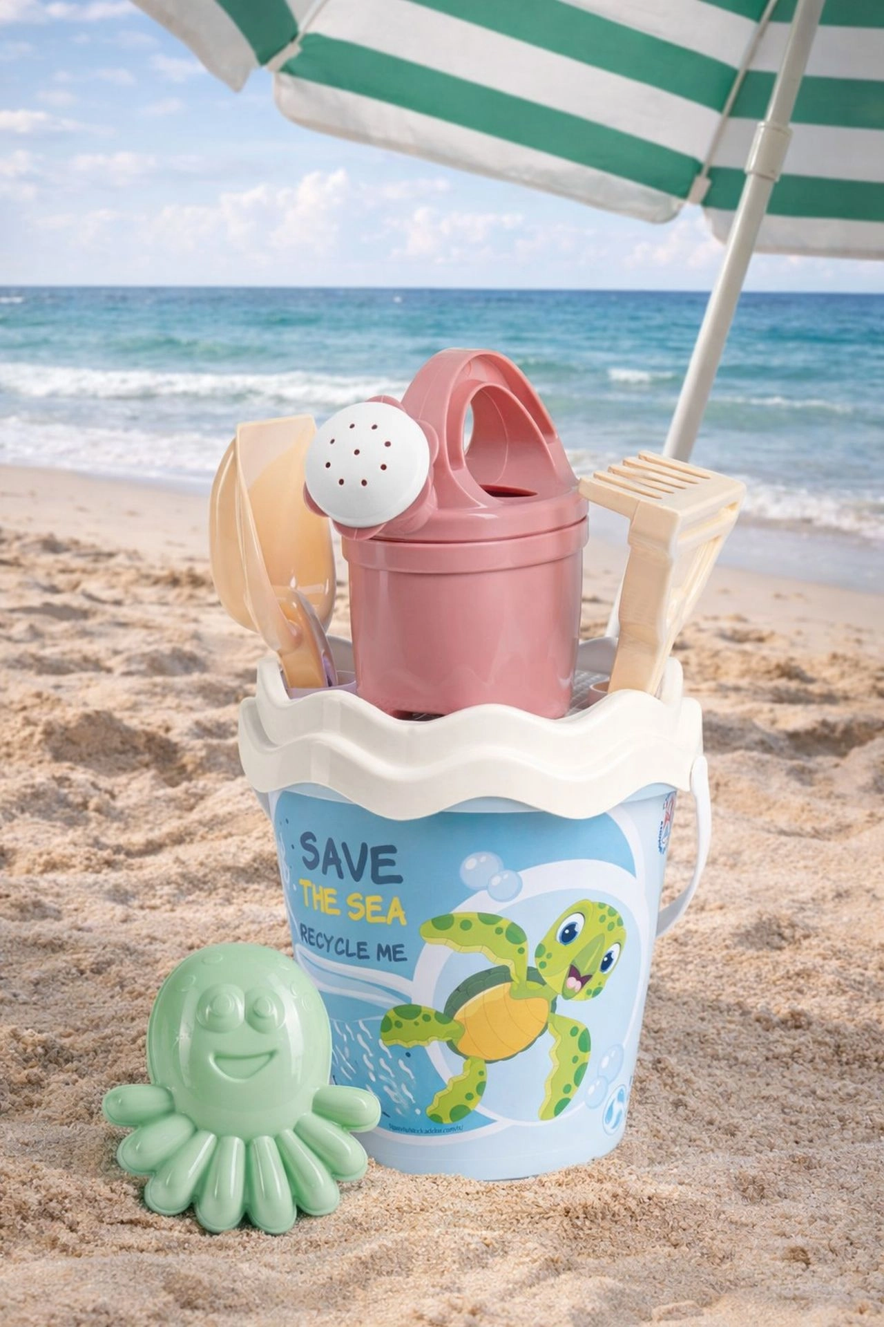 Ovaj stilski i ekološki set za pijesak proizveden je u Italiji od kvalitetnih recikliranih plastika koje su izdržljive, sigurne i obzirne prema prirodi. Zahvaljujući praktičnom sastavu i ugodnim pastelnim bojama potiče dječju kreativnost i osjetilnu percepciju tijekom igre u pijesku i vodi.