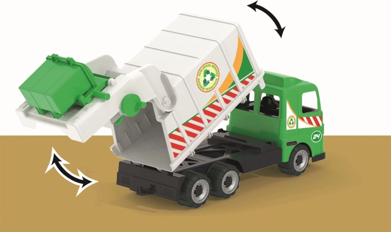 Kamion je dio serije Heavy Trucks i ističe se izdržljivom konstrukcijom od kvalitetne plastike proizvedene u Italiji. Siguran je i prilagođen najmlađoj djeci od 12 mjeseci, pri čemu potiče finu motoriku, koordinaciju ruka–oko i uljne igre na temu čišćenja i recikliranja.