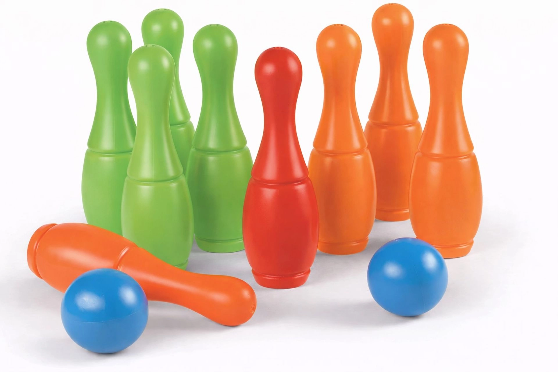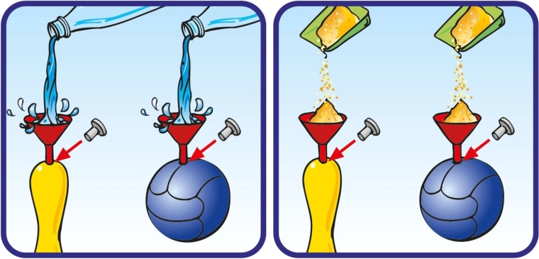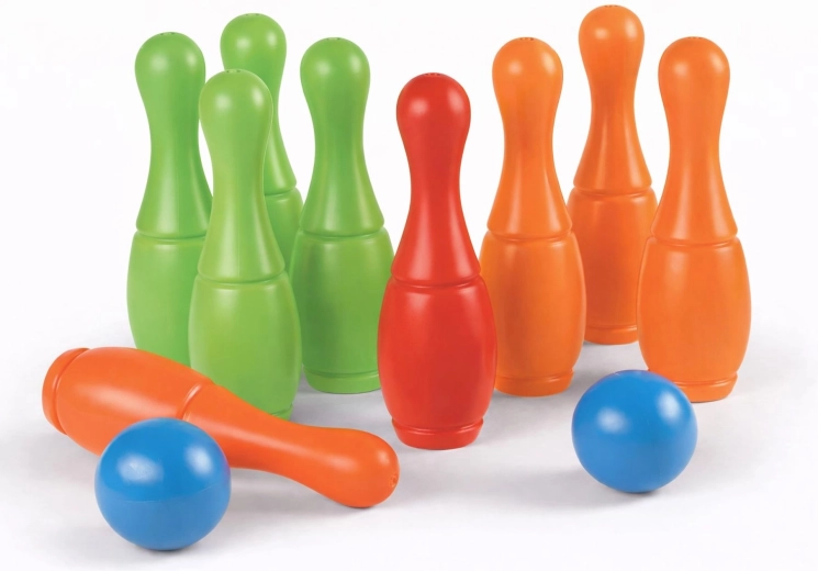 Set je osmišljen za jednostavno korištenje: otvori za punjenje nakon punjenja zatvaraju se malim čepićima koji su dio crnog držača čunjeva. Zahvaljujući visini čunjeva od 27 cm, igra je pregledna i za manju djecu te potiče razvoj motorike, koordinacije i preciznosti.