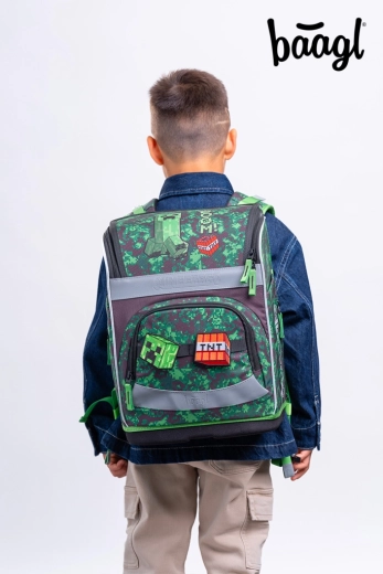 Aktovka Baagl Zippy Plus s motivom MINECRAFT Boom idealan je izbor za djecu od 1. razreda. Zahvaljujući čvrstom, ojačanom tijelu odlično drži oblik i samostalno stoji, što olakšava spremanje bilježnica i udžbenika. Pomični leđni sustav omogućuje podešavanje aktovke na tri različite veličine, pa raste zajedno s djetetom. Potpuno podesive naramenice i odvojivi lumbalni pojas osiguravaju udobno i zdravo nošenje tijekom cijelog dana.
