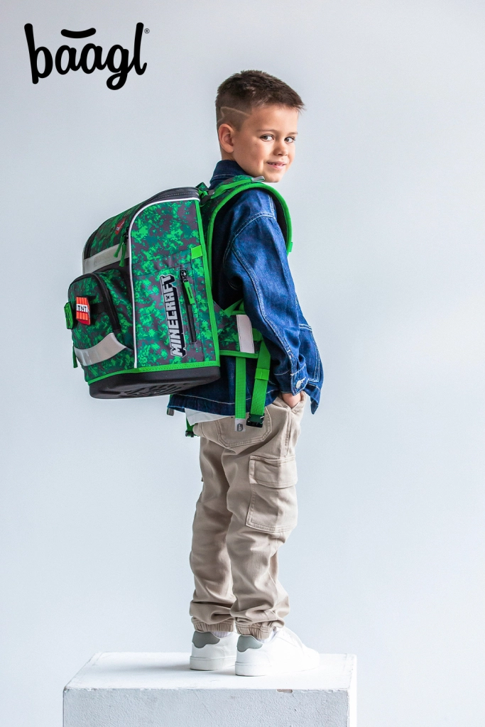 Cijeli set krase gamerski motivi MINECRAFT s pikseliranom kamuflažom i reflektirajućim elementima za bolju vidljivost. YKK patentni zatvarači osiguravaju dug vijek i glatko zatvaranje, dok reciklirani, vodootporni materijali odolijevaju zahtjevnoj školskoj upotrebi.