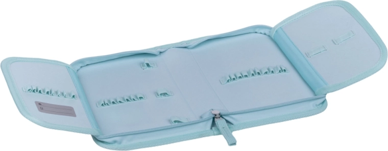 Jednoslojna pernica s dvije preklopne strane, YKK patentnim zatvaračem, malim džepićem i prozorčićem za raspored. Laka vrećica s džepom na patent, čvrstim uzicama i kukicom za pričvršćivanje na ruksak.