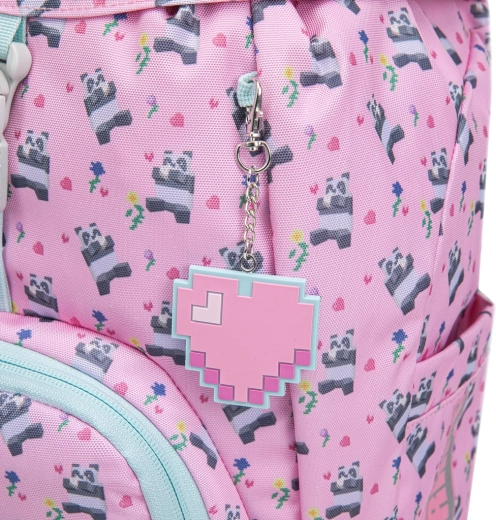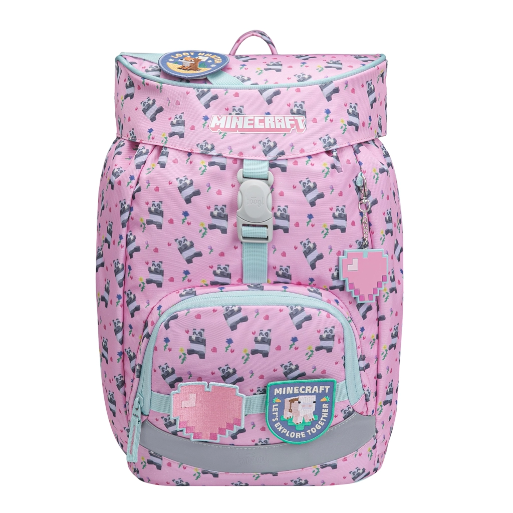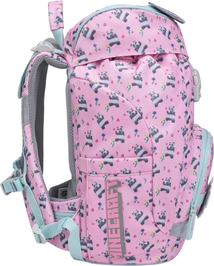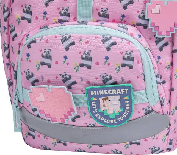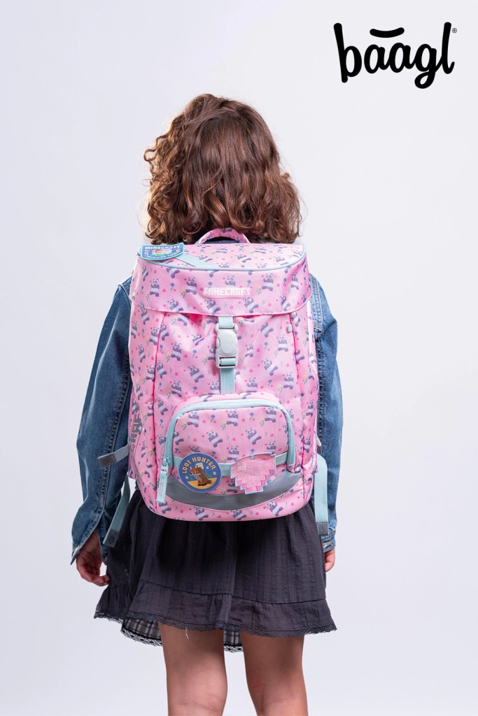Lagan i ergonomski školski set BAAGL Airy s motivom MINECRAFT Panda razveselit će svakog malog školarca. Sadrži ultralagani ruksak 750 g s prozračnim leđima i podesivim naramenicama, jednoslojnu pernicu s preglednom organizacijom i vrećicu s džepom na patent za papuče ili sport. Izrađeno od recikliranih i vodootpornih materijala, dopunjeno reflektirajućim elementima i izmjenjivim značkama za zabavnu personalizaciju.