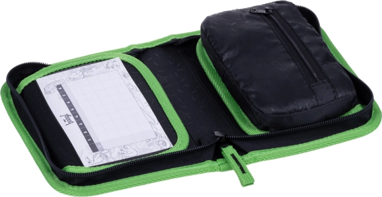 Stilsku školsku pernicu s motivom MINECRAFT Boom odlikuje praktično jednoslojno izvedenje s dvjema preklopnim krilima, izdržljiv YKK patentni zatvarač i pregledna organizacija. Unutra ćete naći džepiće za sitnice, prozorčić za raspored sati i čvrste gumice kompatibilne i s trokutastim bojicama i flomasterima. Pernica je bez punjenja i izrađena od recikliranog materijala.