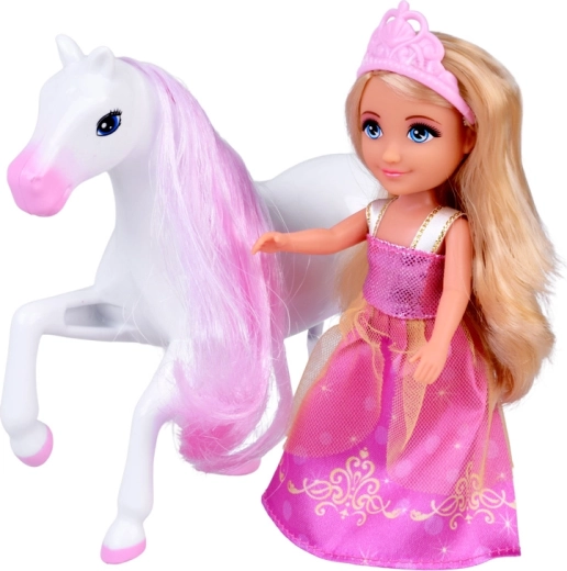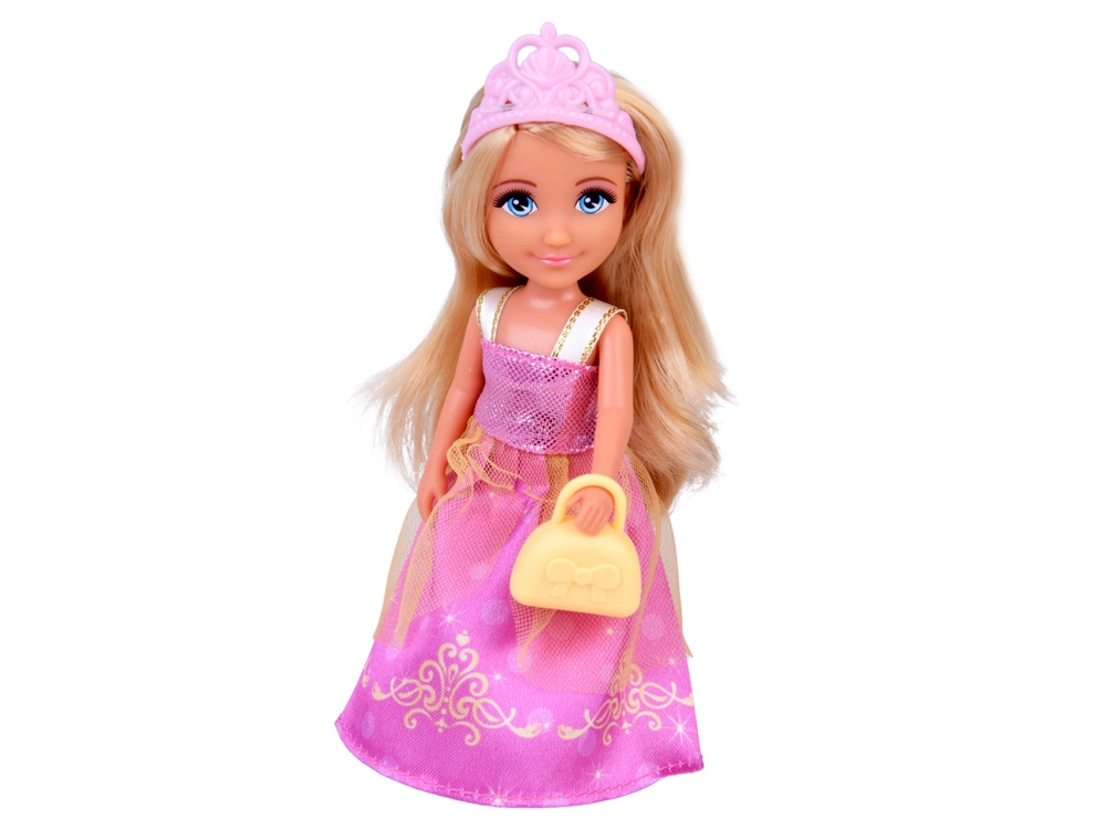 Lutkica s dugom plavom kosom, ružičastom krunom i sjajnom haljinom. Idealna za igru uloga – od kraljevskih posjeta do balova u palači.