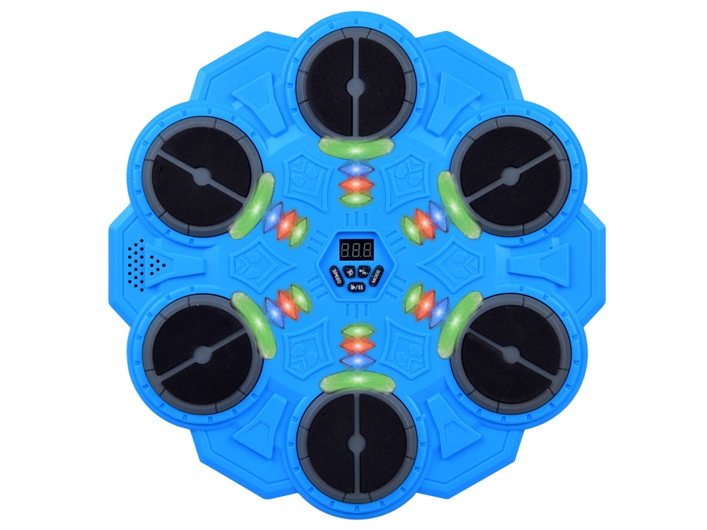 Pretvorite dječju sobu u mini trening studio. Okrugla ploča sa šest mekih udarnih zona osvjetljava ciljeve u različitim sekvencama koje dijete treba što brže pogoditi. Šareni LED svjetlosni efekti i brojač pogodaka dodaju natjecateljski duh, dok zvukovi udaraca i glazbena pratnja održavaju motivaciju i tijekom dulje vježbe.