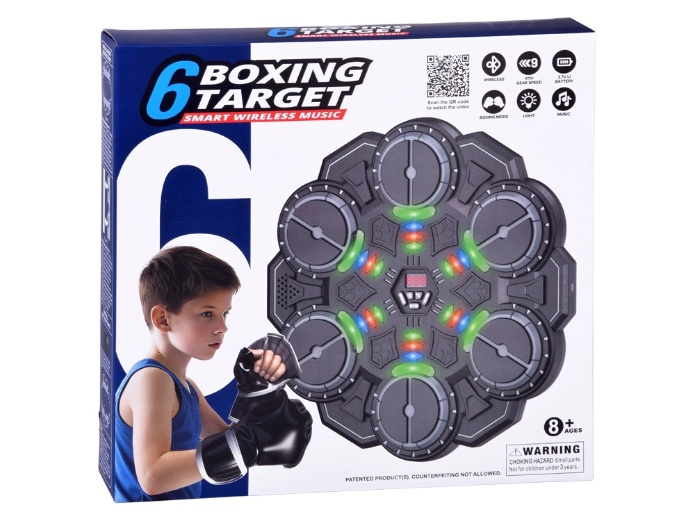 Zabavan i siguran način da potaknete djecu na kretanje: interaktivna boksačka meta sa 6 LED osvijetljenih ciljeva, zvučnim efektima i glazbom trenira brzinu reakcije, koordinaciju oko–ruka i preciznost. Jednostavna zidna montaža, ugrađena punjiva baterija s USB punjenjem i podesiv tempo pretvaraju trening u privlačnu igru.