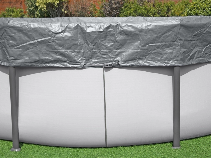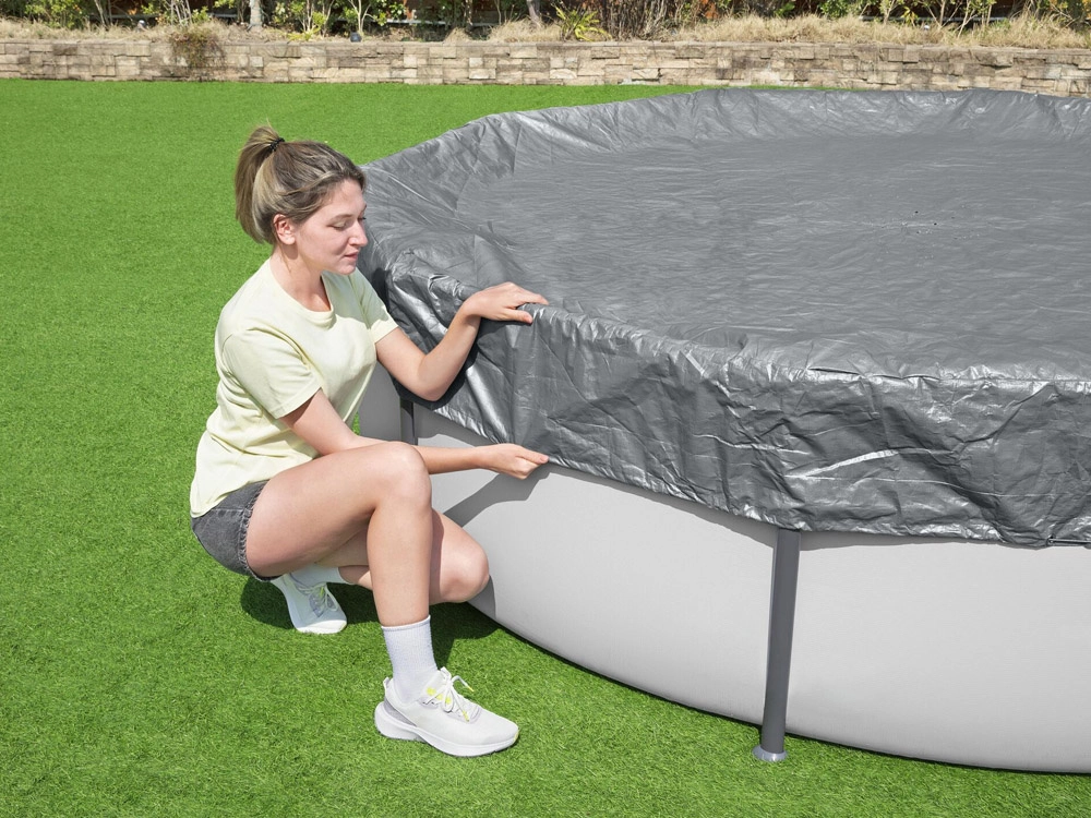 Premium pokrivač za okrugli bazen promjera 3,05 m marke BESTWAY pouzdano štiti vodu od lišća, trave i nečistoća. Izrađen je od ojačanog UV otpornog materijala s tehnologijom Polar‑Shield, koja osigurava fleksibilnost čak i na hladnoći do −25 °C. Praktični drenažni otvori sprječavaju zadržavanje vode na površini, a vjetrootporno pričvršćivanje drži pokrivač čvrsto na mjestu.