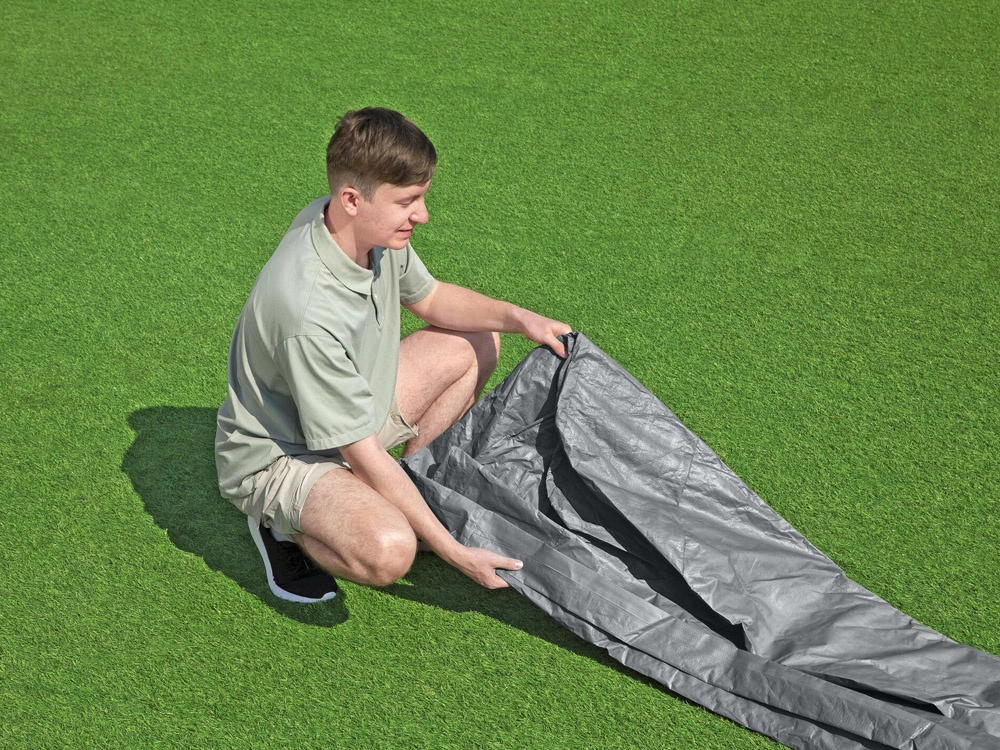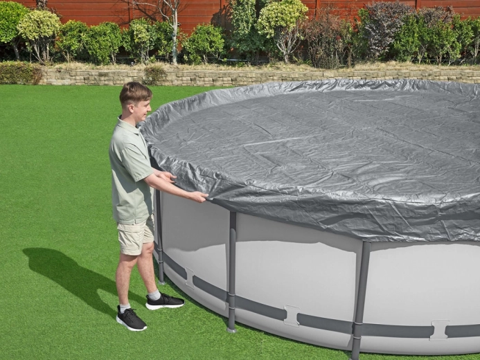 Održavajte vodu u bazenu čistijom dulje vrijeme. Premium pokrivna cerada BESTWAY promjera 4,57 m namijenjena je za okrugle nadzemne bazene i kombinira čvrstoću, otpornost na UV zračenje i pouzdano pričvršćenje. Integrirani drenažni otvori sprječavaju stvaranje lokvi na površini i olakšavaju svakodnevnu uporabu.