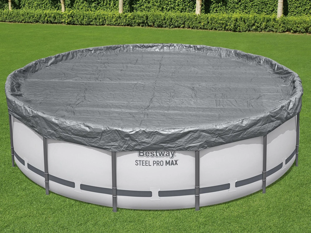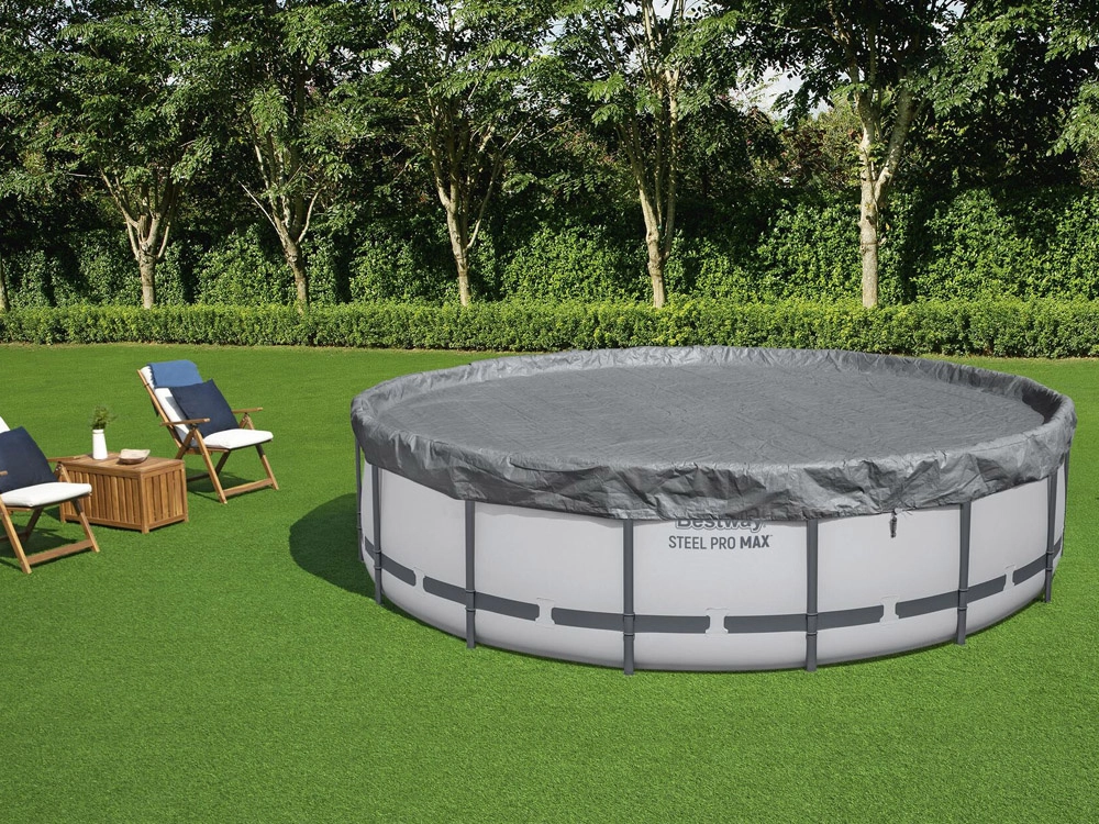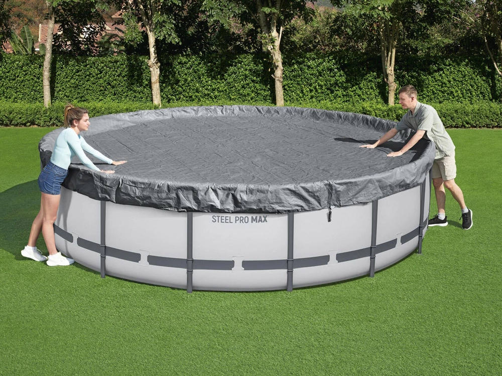 Izdržljiva pokrivna cerada za bazen promjera 4,57 m štiti vodu od lišća, trave i nečistoća. Izrađena je od ojačanog materijala s UV zaštitom, ima vjetrootporan sustav zatezanja za čvrsto pričvršćenje i drenažne otvore protiv nakupljanja kišnice. Zahvaljujući tehnologiji Polar‑Shield podnosi i niske temperature do −25 °C.
