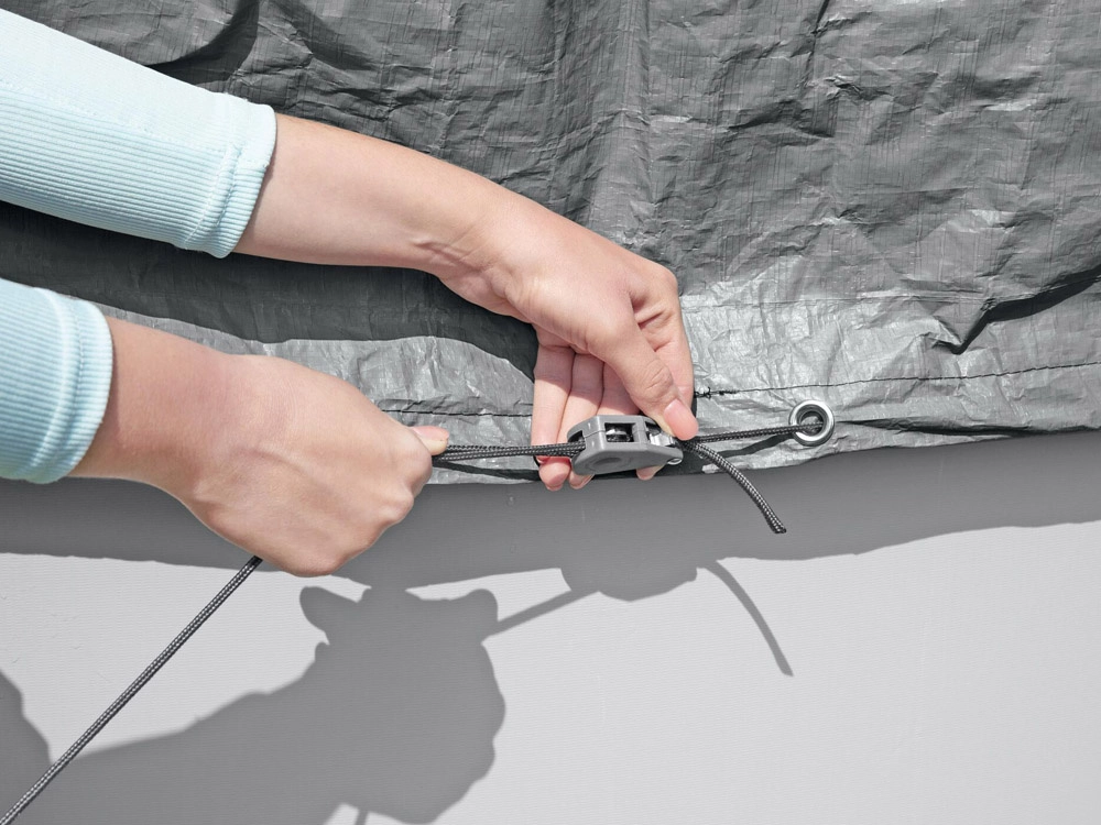 Integrirani mehanizam zatezanja sa graničnikom osigurava ceradu oko ruba bazena za sigurno i stabilno pričvršćenje.