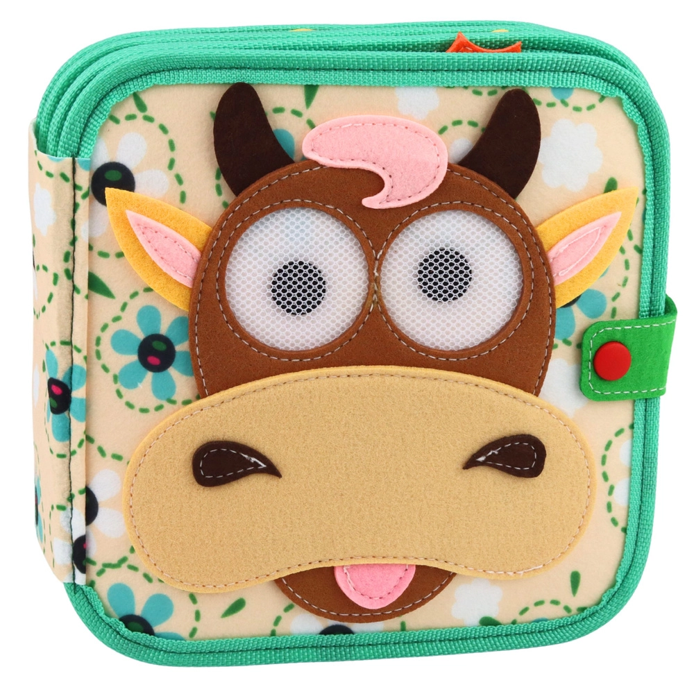 Interaktivna senzorna knjiga od mekog filca s motivom kravice potiče finu motoriku, koordinaciju oko–ruka i učenje boja i oblika. Zahvaljujući premještanju i uparivanju dijelova te seoskim scenama djeca razvijaju maštu i koncentraciju. Laka, izdržljiva i idealna za putovanja, vrtić i igru kod kuće.