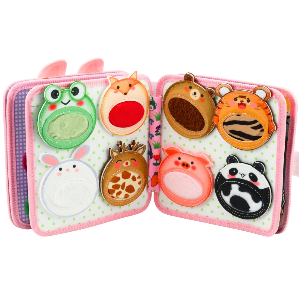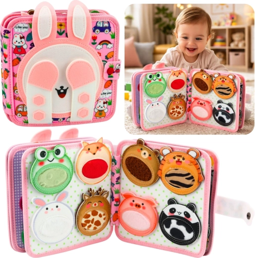 Otkrijte razigranu osjetilnu knjižicu od mekoga filca s motivom ružičastog zečića koja potiče finu motoriku, osjetilni razvoj i učenje boja i oblika. Zahvaljujući pokretnim i pričvrstivim elementima djeca vježbaju koordinaciju ruka–oko i koncentraciju, dok uživaju u sigurnoj i tihoj igri kod kuće i na putovanjima.