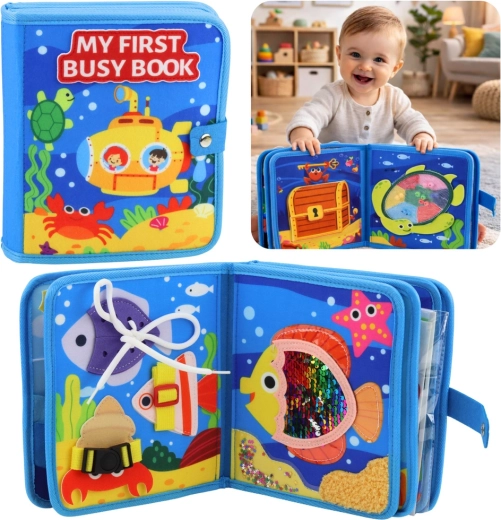 Ova kreativna senzorna filcana knjižica s morskom temom predstavlja ribice, kornjaču, raka i škrinju s blagom. Svaka stranica nudi različite zadatke i poticaje za razvoj koordinacije oko–ruka, koncentracije te prepoznavanja boja i oblika. Zahvaljujući mekoj izvedbi idealna je za malu djecu i predškolce.