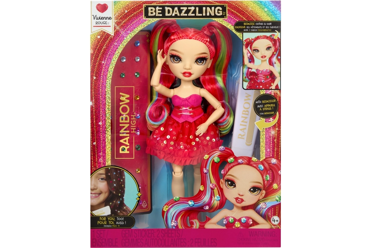 Otkrij čaroliju mode s lutkom Rainbow High Vivienne Rouge u blistavom crvenom stilu. Zahvaljujući pokretnim zglobovima, dugoj kosi pogodnoj za češljanje s duginim pramenovima i posebnom alatnom za aplikaciju kamenčića, stvorit ćeš očaravajuće frizure i stylish outfite. U paketu su samoljepljivi dragulji za ukrašavanje kose i odjeće te mogućnost beskrajne kreativne igre.