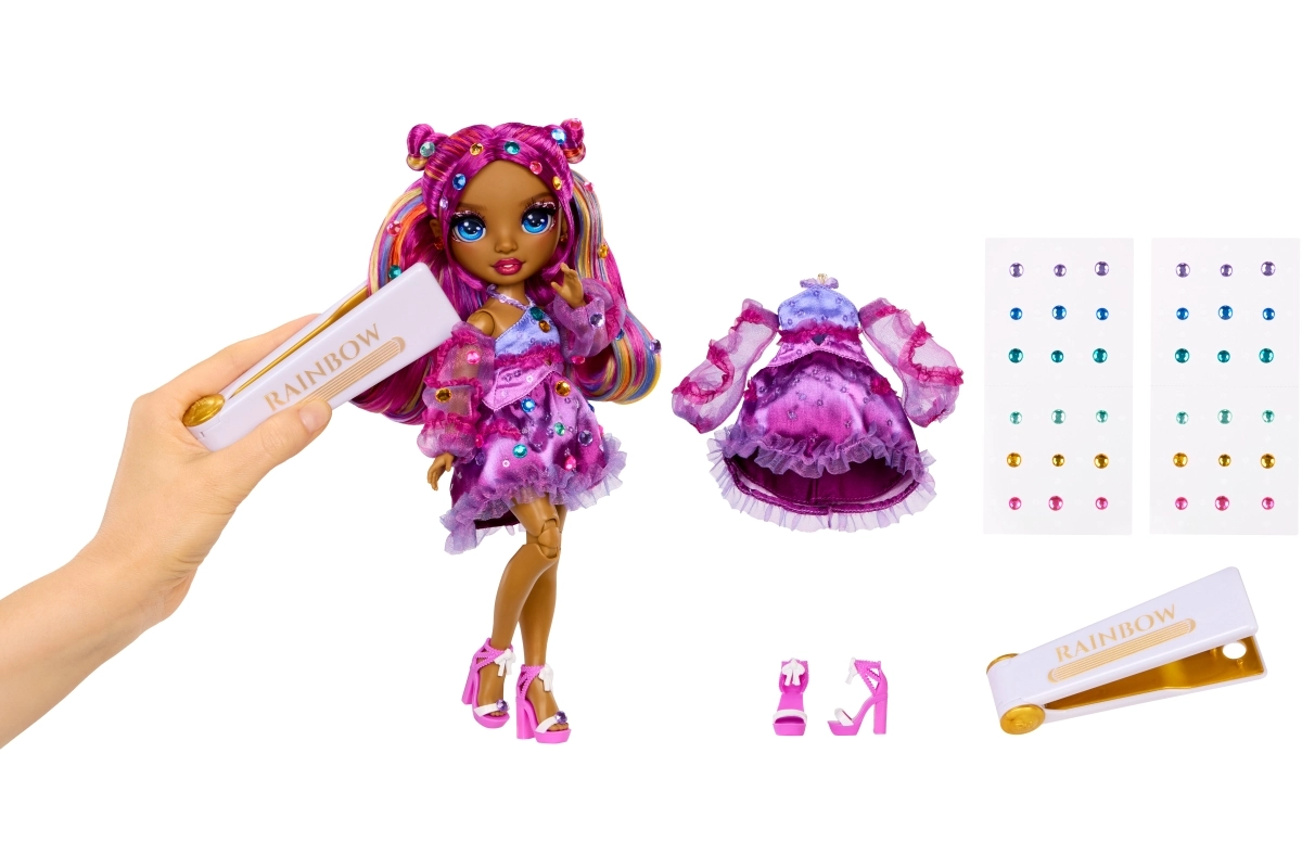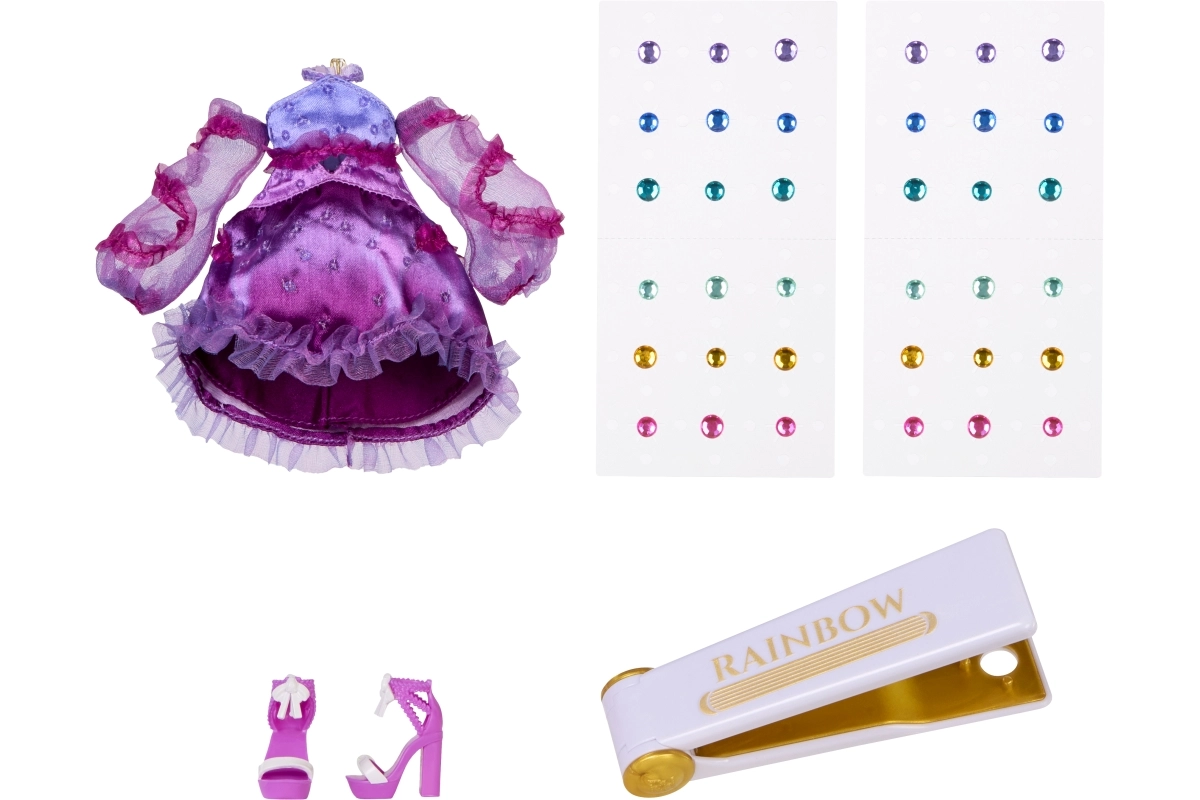 Uz krimp alat RAINBOW lako nanosiš šarene kamenčiće u kosu lutke i na njezinu haljinu za blistav look.