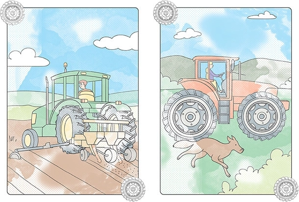 - 8 magičnih slika s motivima traktora i poljoprivrednih strojeva.