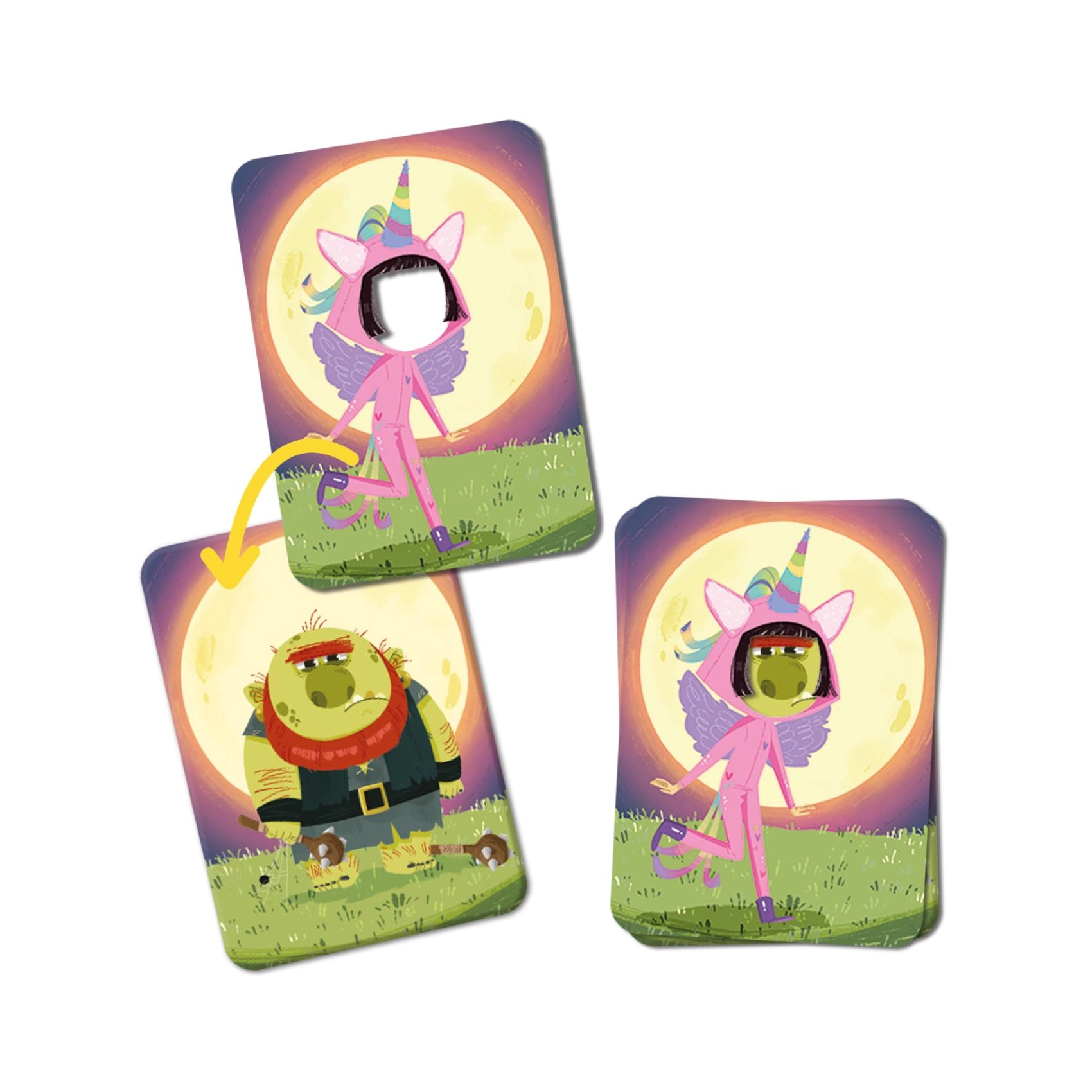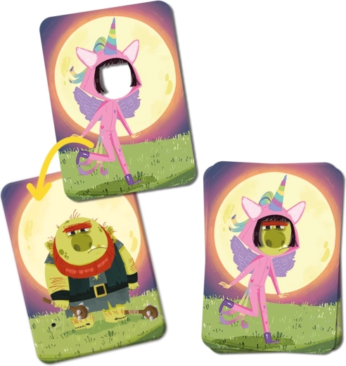 Igrači se izmjenjuju u ulogama maga i čudovišta, nastoje zapamtiti što više otkačenih prerušavanja i pravilno ih otkriti. Kompaktna kutijica 9 × 13 × 4 cm stane u ruksak ili torbicu, pa zabavu možete imati uvijek pri ruci.