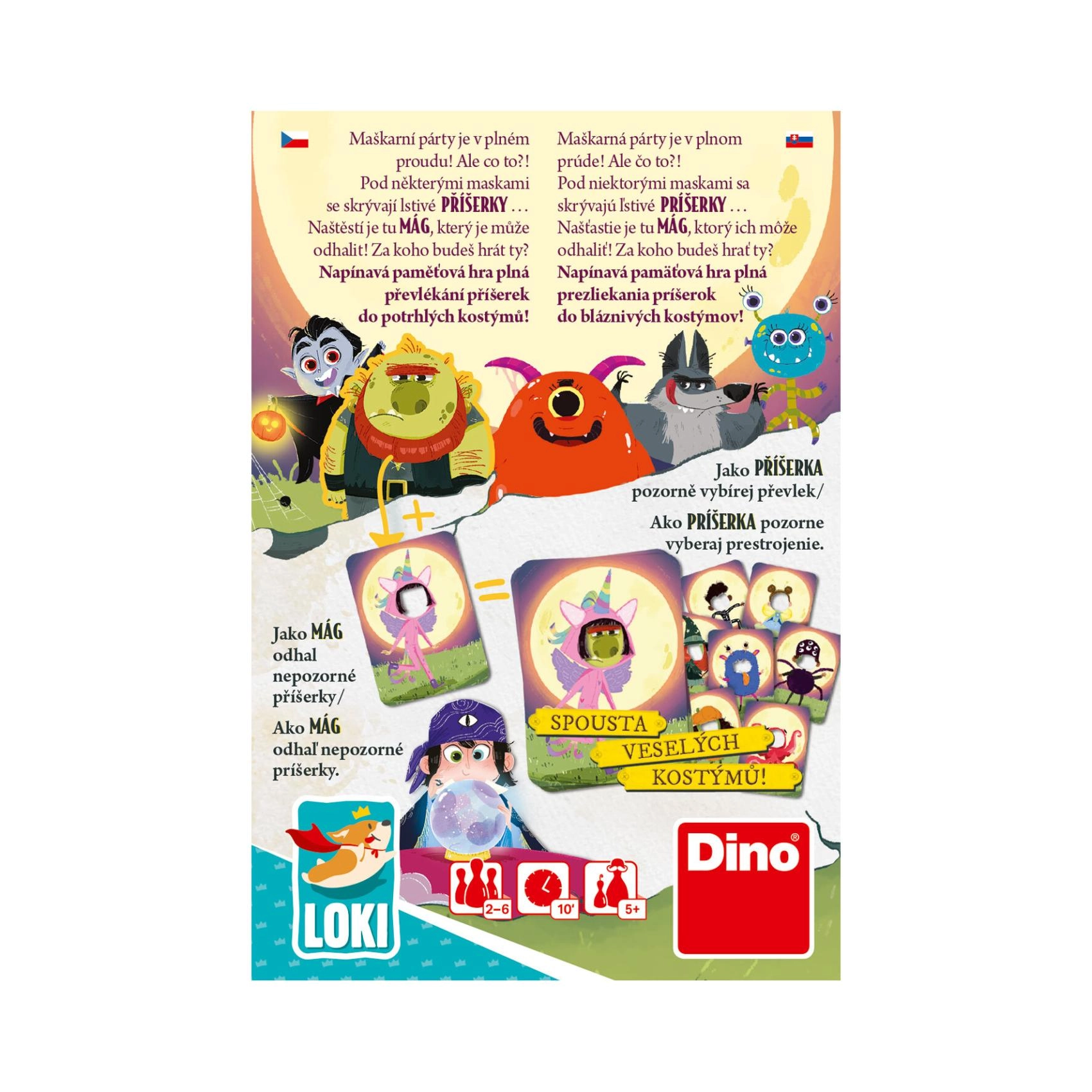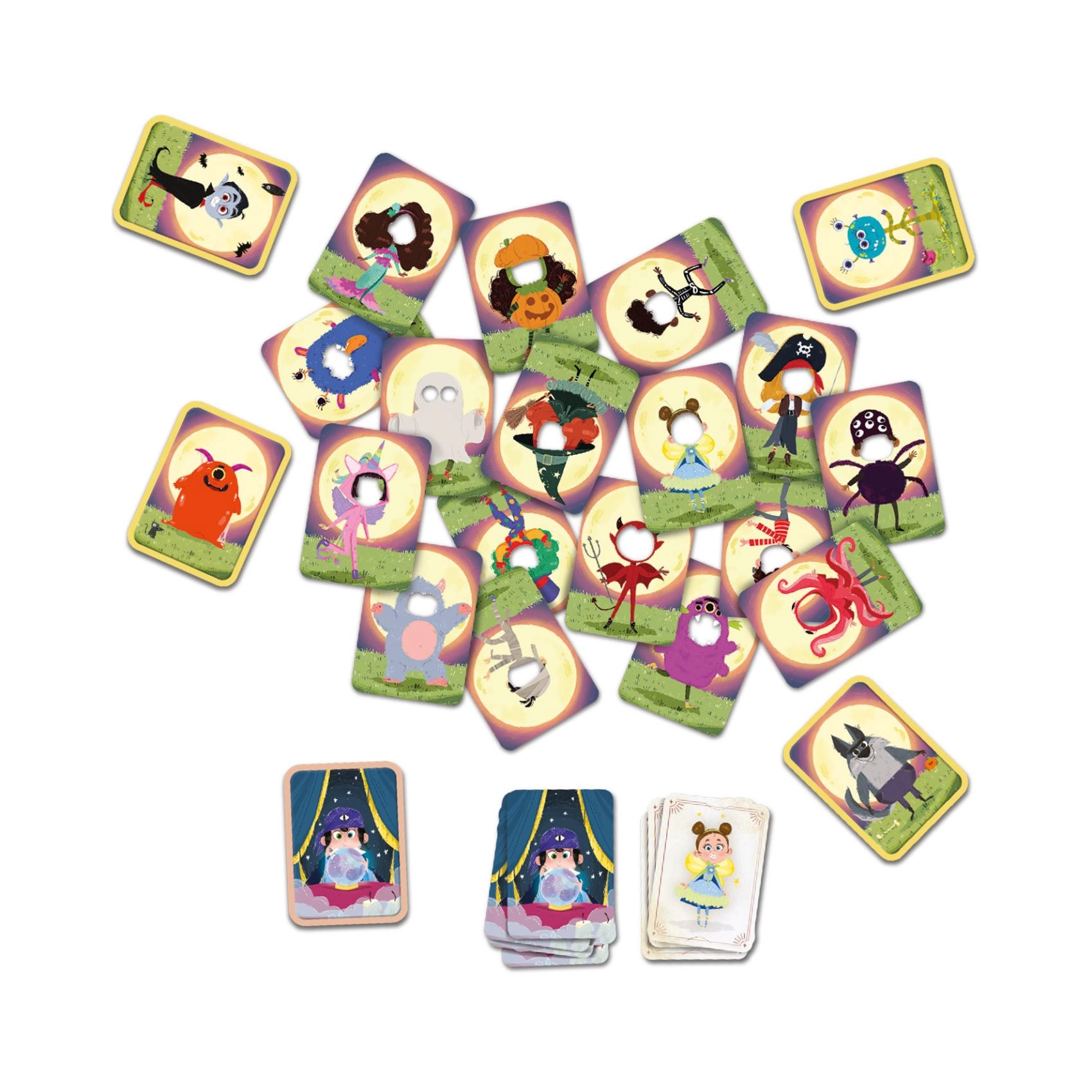 Zabavna obiteljska igra za djecu od 5 godina u kojoj vježbaju pamćenje i opažanje. Uživite se u ulogu maga ili čudovišta, pratite šarene kostime i otkrijte tko se skriva iza maske. Brzo trajanje igre oko 10 minuta, idealno za party, izlete i poslijepodne s prijateljima. Za 2–6 igrača.