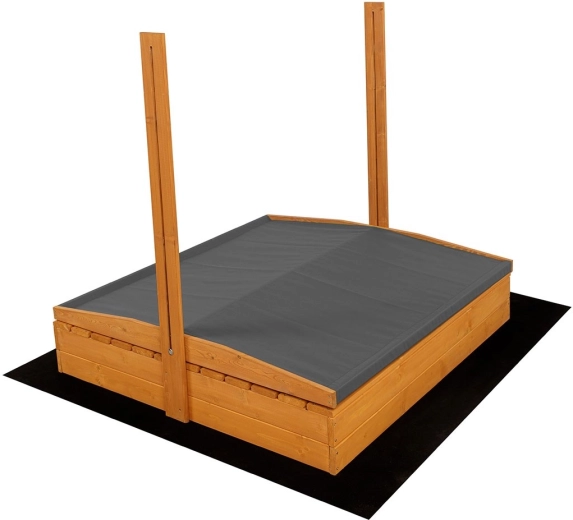 U pakiranju se nalazi sve za trenutačnu upotrebu: geotekstil protiv rasta korova, pokrivna cerada s kukama, vijci, robusne šarke i plastična igračka za pijesak. Preporučena količina pijeska 75–100 kg za idealno punjenje.