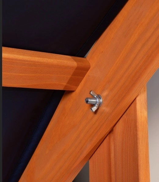 Podesiva nadstrešnica od izdržljive, vodonepropusne tkanine štiti od sunca i slabije kiše, a po završetku igre pješčalište se može lako pokrivati. Zahvaljujući predizbušenim otvorima i jasnim uputama, montaža je brza i ne zahtijeva dodatni alat.