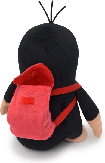 Krtek je opremljen crvenim ruksakom koji dodaje na razigranosti i interaktivnosti igračke.