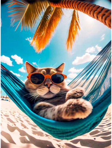 Dijamantno slikanje idealan je izbor za mirne trenutke i kreativno opuštanje. Pomoću aplikacijskog pera nanosite sitne kamenčiće na unaprijed otisnuto i ljepljivo platno prema kolor legendi. Rezultat je blistava mozaična slika s motivom mačke u visećoj mreži, koju je po završetku jednostavno uokviriti (okvir nije uključen u pakiranje).
