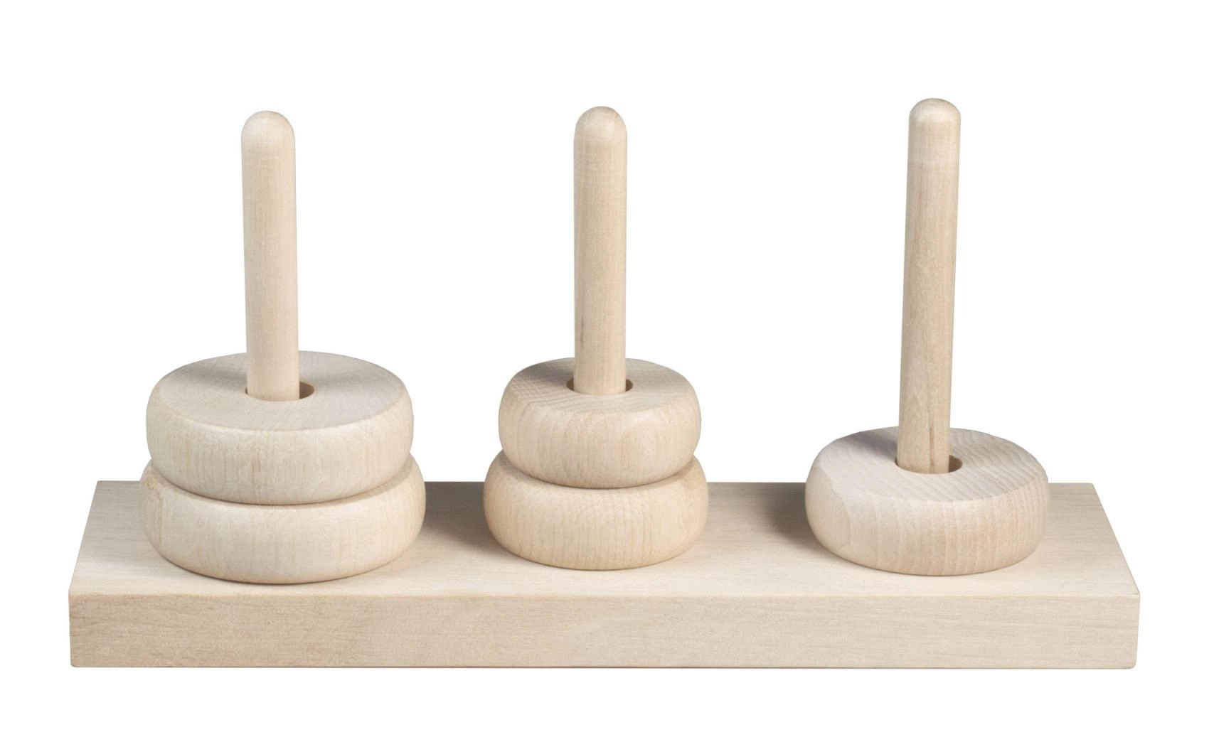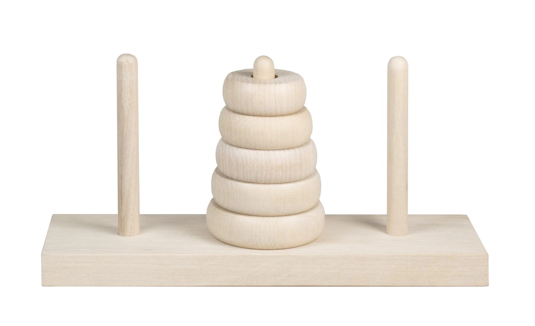 Hanojska kula je klasična matematička slagalica iz 1883. koja zabavlja i uči generacije igrača. Cilj je premjestiti sve prstenove s jedne šipke na drugu prema jednostavnim pravilima – uvijek se može premjestiti samo jedan prsten, a veći prsten nikada ne smije ležati na manjem. Ova drvena verzija nudi prirodan izgled, čvrstu bazu i glatke prstenove za ugodno rukovanje.