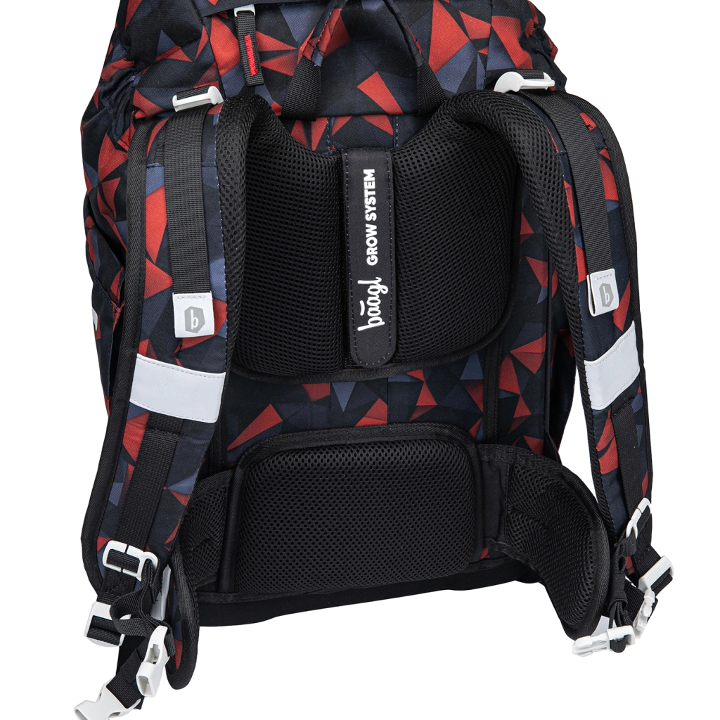 Torbа je izrađena od recikliranog, vodootpornog materijala i zadovoljava standard GRS. Sigurnost povećavaju reflektirajući elementi, dok zamjenjivi bedževi Baaglies omogućuju djeci da izraze vlastiti stil. Rastući leđni sustav Grow nudi tri veličine, tako da torba raste zajedno s djetetom.