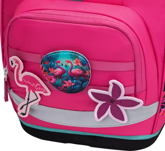 Školski set BAAGL Airy Plus Plamenci kombinira ergonomiju, nisku masu i promišljenu organizaciju. Ruksak s anatomskim leđima i rastućim sustavom Grow lako se prilagođava građi djeteta. Zahvaljujući masi ispod 1,2 kg, prozračnoj podstavi i podesivim ramenim naramenicama, prsnom i odvojivom pojasu za bokove nošenje je udobno cijeli dan.