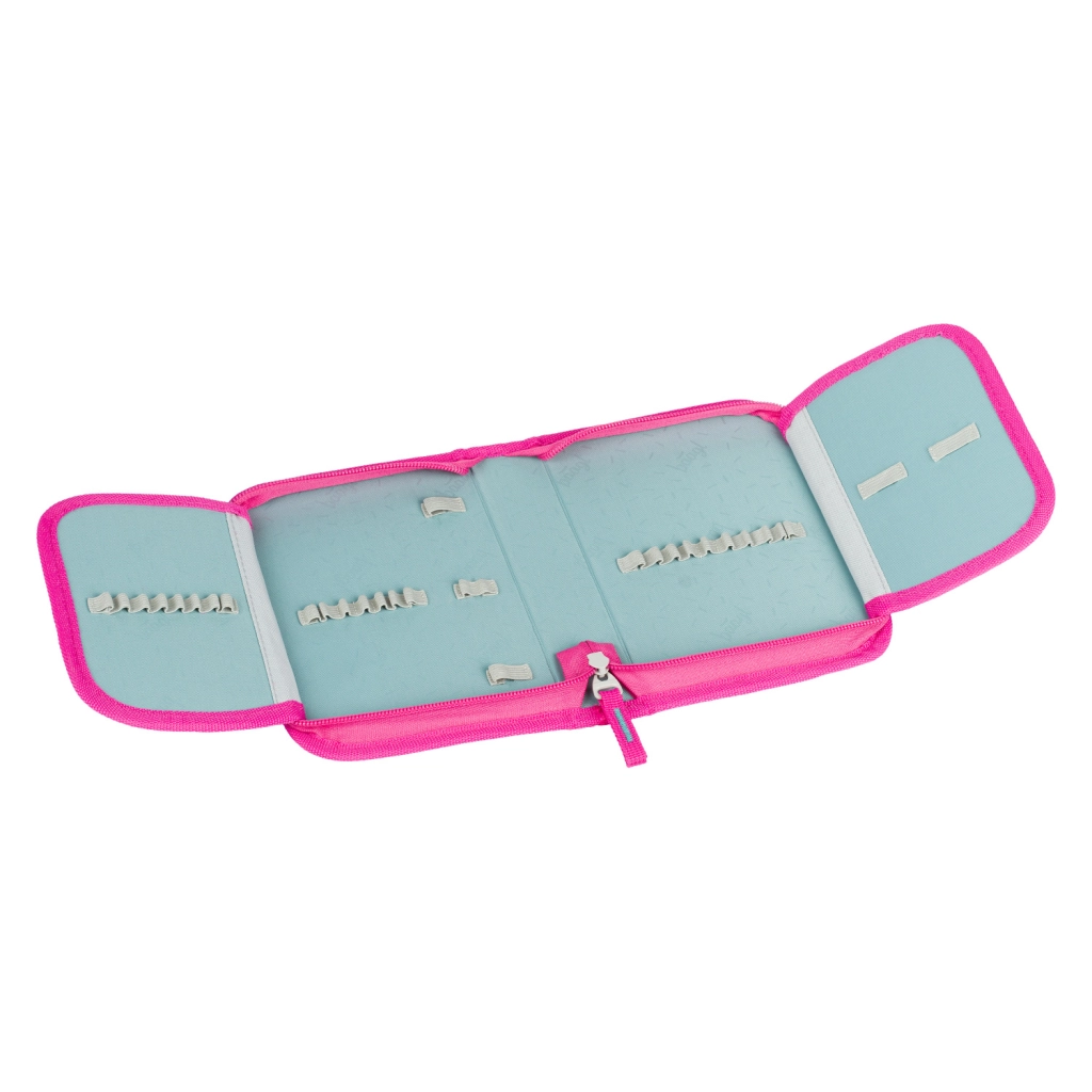 Set upotpunjuje jednopregradna pernica bez punjenja s kvalitetnim YKK patentnim zatvaračem, džepiće za sitnice i prozorčićem za raspored, koju je moguće potpuno rastvoriti za savršen pregled. Praktična vrećica s karabinerom lako se pričvrsti na ruksak i koristi za papuče, stvari za tjelesni ili slobodno vrijeme.
