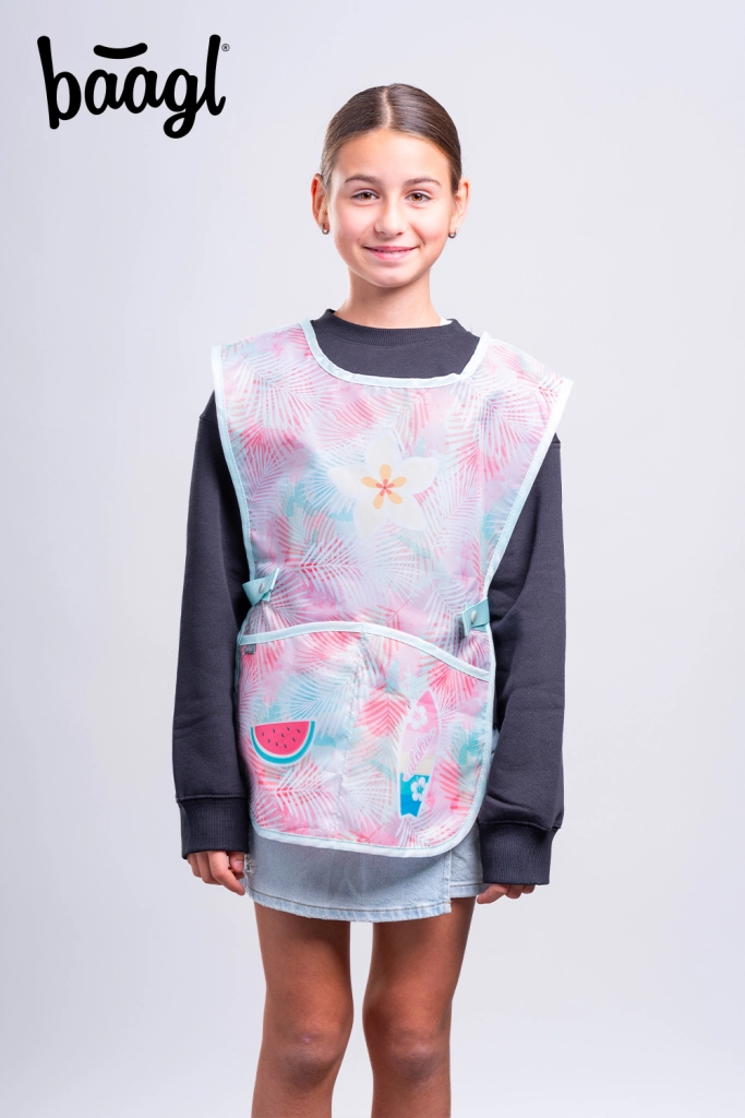 Priuštite djeci udobno i sigurno stvaranje. Dječja pregača BAAGL Sunset s tropskim motivom pouzdano štiti odjeću pri slikanju, modeliranju i kuhanju. Izdržljiv i lako periv materijal jednostavan je za održavanje – dovoljno je prebrisati vlažnom krpom.