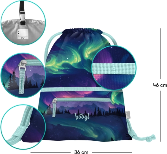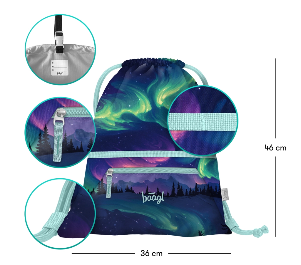 Vrećica s džepom Baagl Aurora GRS je stilsko i funkcionalno rješenje za svakodnevno nošenje papuča, sportske opreme i sitnica za školu ili putovanja. Prednji džep s patentnim zatvaračem drži ključeve, novac ili telefon sigurno pri ruci, dok čvrst, periv materijal osigurava dug vijek trajanja i jednostavno održavanje.