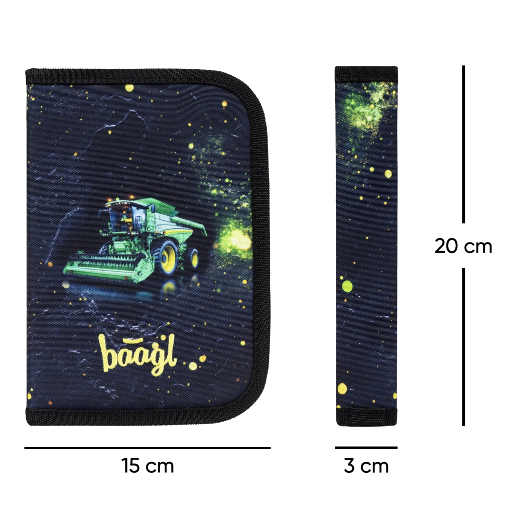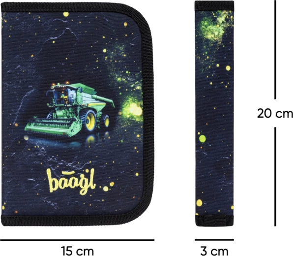 Školska pernica Baagl s atraktivnim motivom traktora idealan je izbor za učenike koji traže izdržljivo i pregledno spremanje pribora za pisanje. Jednoslojna konstrukcija s dvjema preklopnim krilcima i kvalitetan YKK zatvarač osiguravaju jednostavnu i pouzdanu svakodnevnu upotrebu.