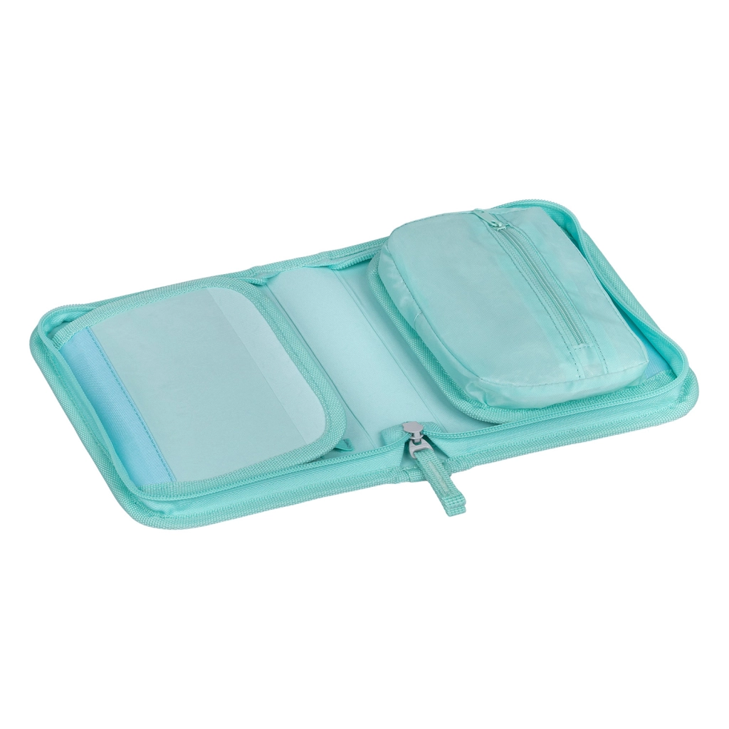 Dvije preklopne pregrade, čvrsti elastični držači i džepići za sitnice drže sve točno na svom mjestu. Rasklopiva konstrukcija olakšava brzu orijentaciju u sadržaju.