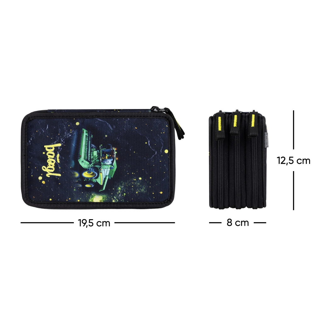 Držite sav svoj pisaći pribor pregledno na jednom mjestu. Troetažna pernica BAAGL Traktor GRS nudi promišljenu podjelu i dovoljno prostora za bojice, flomastere, olovke i druge sitnice. Ojačan hrbat olakšava rukovanje pri zatvaranju, a kvalitetni YKK patentni zatvarači jamče dugi vijek trajanja.
