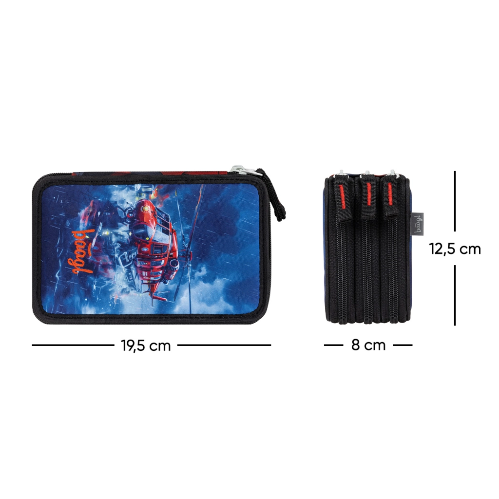 Ova trokatna školska pernica Spasitelji GRS idealan je izbor za učenike kojima je potrebno imati svoj pribor za pisanje pregledno organiziran. Tri u potpunosti iskoristiva kata primaju bojice, flomastere, olovke, ravnala i sitne školske potrepštine, dok kvalitetni YKK zatvarači osiguravaju glatko i dugotrajno pouzdano zatvaranje.