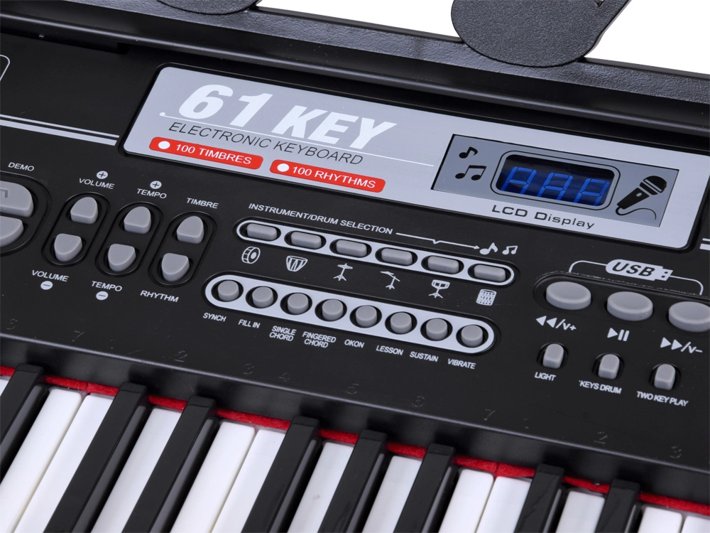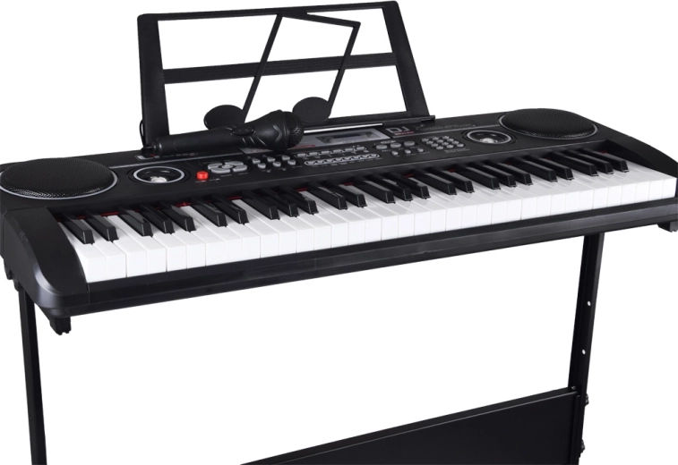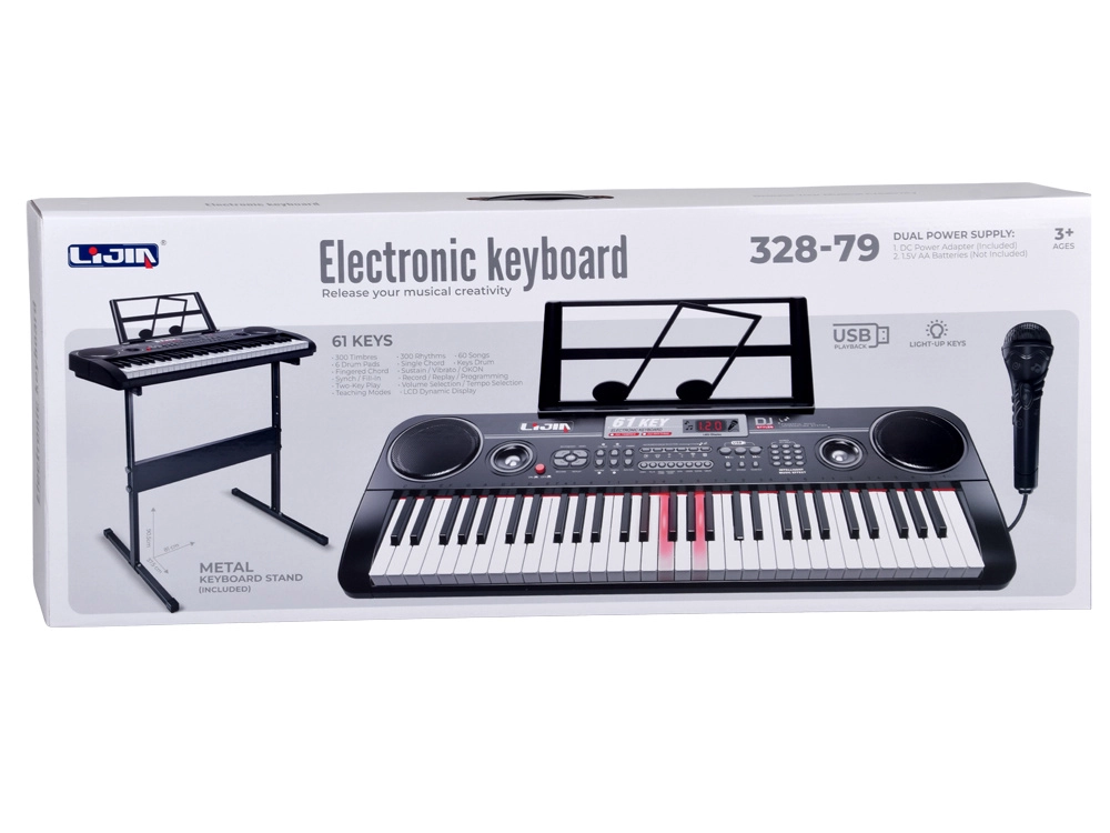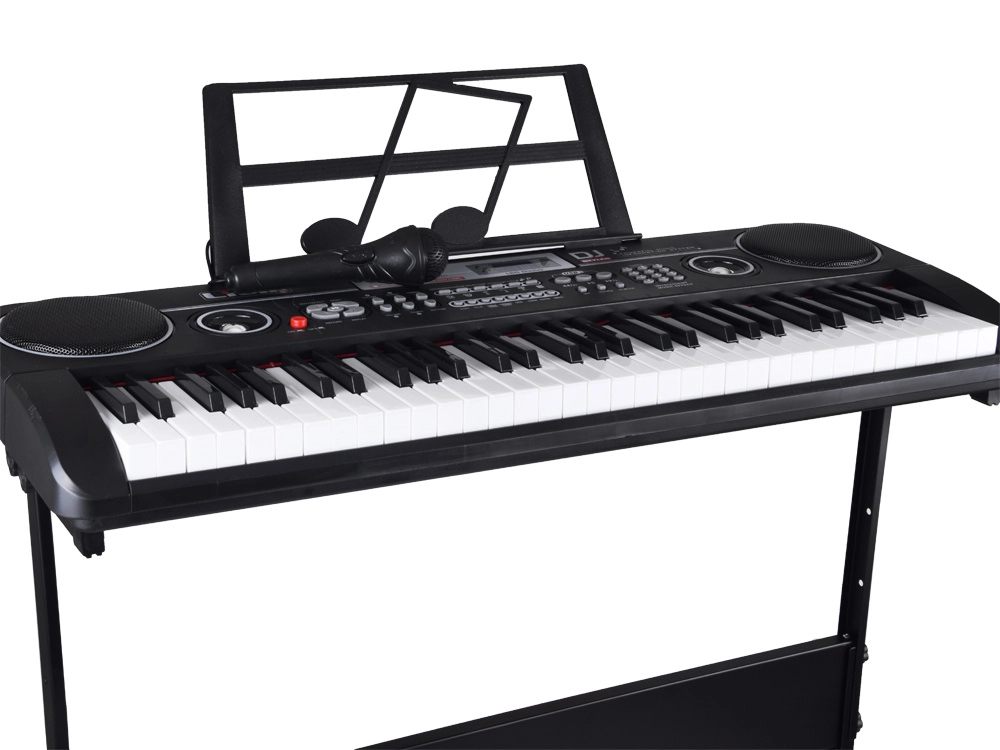 Sa širokom paletom 300 timbrea (klavir, gitara, violina, orgulje itd.) i 300 ritmova (pop, rock, disco…) lako ćete pronaći vlastiti stil. Funkcije poput Sustain, Vibrato, akorda Single/Fingered, 6 drum padova ili Keys Drum potiču kreativnost i ritam. Mikrofon u pakiranju omogućuje istovremeno pjevanje i sviranje – idealno za kućne nastupe.