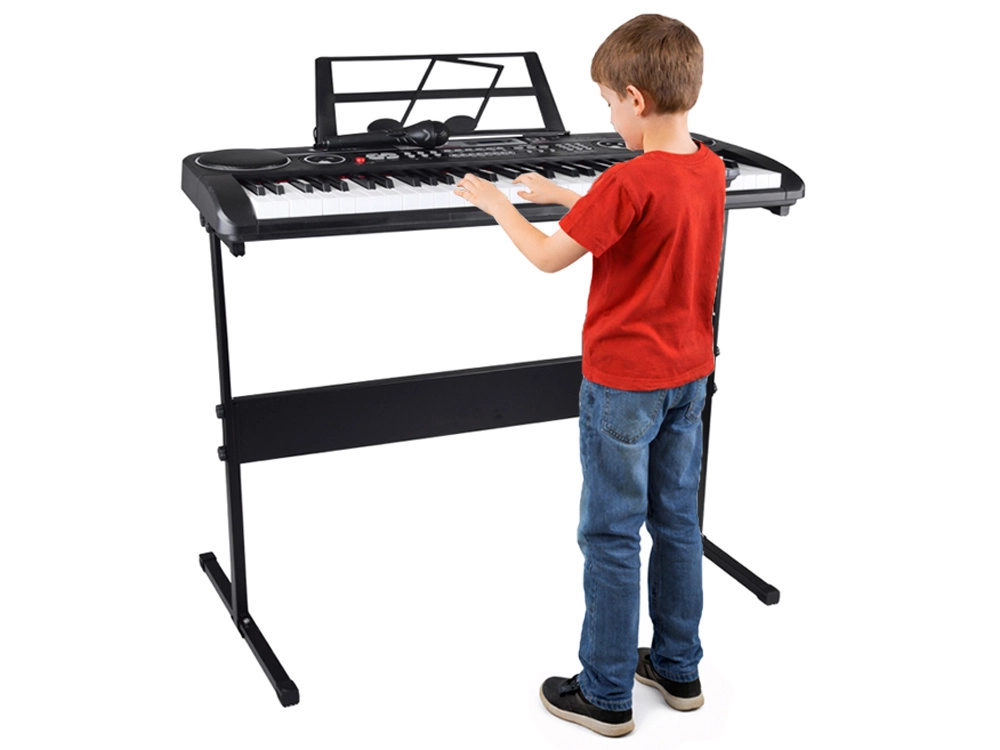 Ova svestrana klavijatura izvrstan je izbor za djecu i početnike. Osvijetljene tipke vode u učenju korak po korak, dok ugrađeni načini poduke i LCD zaslon olakšavaju prve korake u glazbi. Zahvaljujući čistom i ugodnom zvuku sviranje donosi radost od prvog tona.