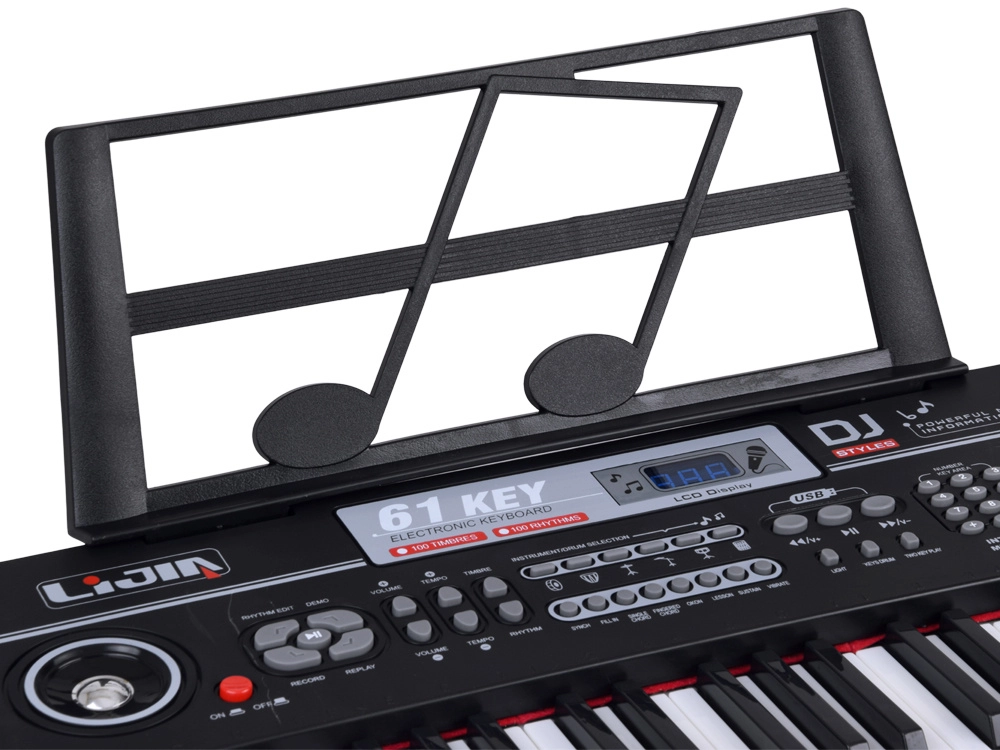 Praktična oprema uključuje stalak, nosač za note, USB kabel i audio kabel s jackom. Zahvaljujući funkciji Record/Replay/Programming svoje ideje lako možete snimiti i ponovno reproducirati. Kompaktne dimenzije i čvrsta konstrukcija čine ga savršenim instrumentom za svakodnevno vježbanje i zabavu.