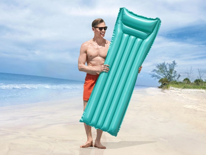 Izdržljiv materijal PVC odlikuje dugi vijek trajanja i otpornost na habanje, pa ležaljka bez problema podnosi cijelu sezonu. Nakon ispuštanja je kompaktna, lako stane u plažnu torbu ili ruksak, a zahvaljujući jednostavnom ventilu brzo je pripremite za uporabu.