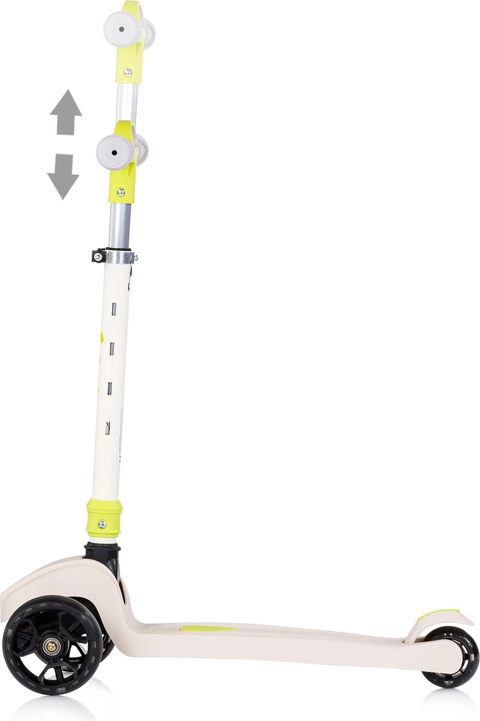 Razveselite djecu vožnjom koja je zabavna, stabilna i sigurna. Dječinski romobil Chipolino Moxie nudi trokotačnu konstrukciju za bolju ravnotežu, visinski podesiva upravljača, sklopivi mehanizam za lako prenošenje i LED svjetleće kotače za vidljivost i efekt. Tu su i nožna kočnica na stražnjem kotaču te zvučni i svjetlosni efekti za još veću zabavu.