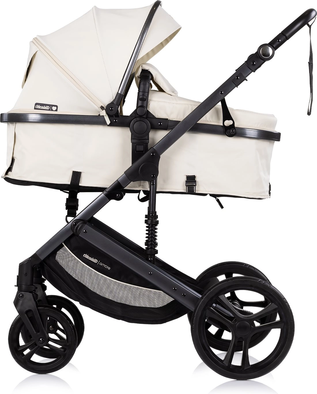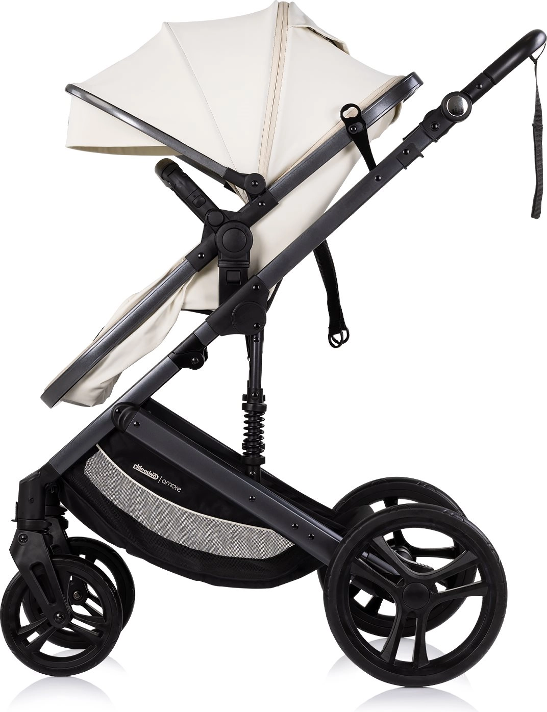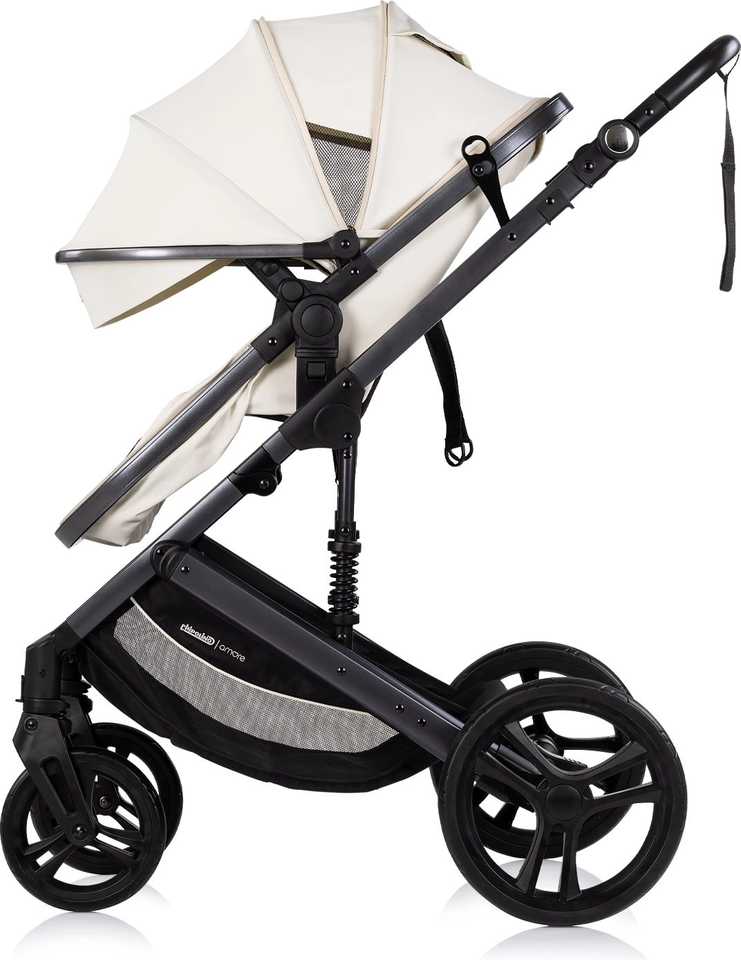 Chipolino Amore 2u1 u nijansi Cashmere svestrana su kolica koja lako prebacujete iz sportske verzije u duboku za novorođenče. Zahvaljujući ovješenom okviru i velikim terenskim kotačima nude glatku i udobnu vožnju u gradu i na lakšem terenu. Podesiva krošnja sa suncobranom štiti dijete, dok 5-točkasti pojas s podstavom i odvojiva prečka povećavaju sigurnost.