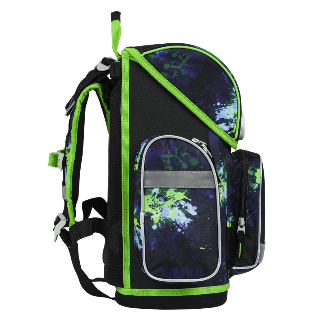 Ergonomska školska aktovka s ojačanim tijelom i kliznim leđnim sustavom ERGO ADJUSTABLE SYSTEM savršeno se prilagođava visini djeteta. Ergonomično oblikovana leđa te u potpunosti podesive naramenice, prsni i bočni kompresijski remeni osiguravaju udobno nošenje i pravilnu raspodjelu opterećenja. Magnetsko zatvaranje Fidlock omogućuje munjevito otvaranje okretanjem i automatsko zatvaranje bez ručnog zaključavanja.